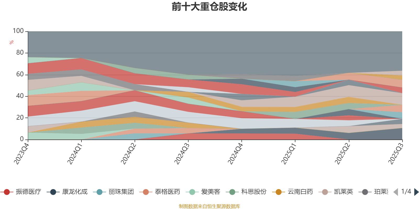 该基金持股集中度较高。截至2025年三季度末,基金十大重仓股分别是药明康德、康龙化成、毕得医药、普蕊斯、海正药业、恩华药业、药石科技、九洲药业、博腾股份、凯莱英。