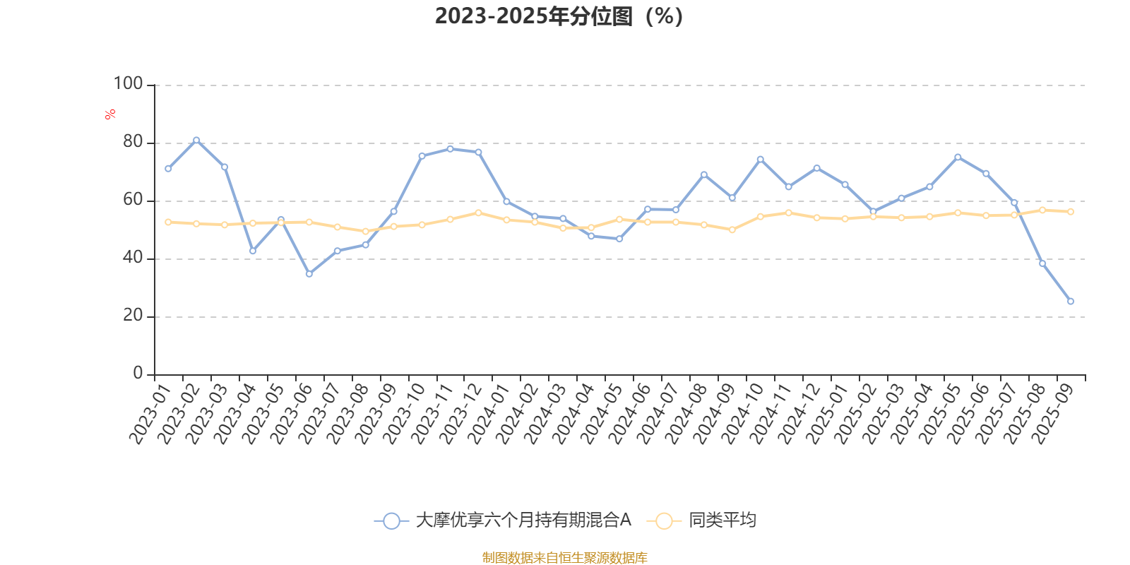 截至10月24日,大摩优享六个月持有期混合A近三个月复权单位净值增长率为0.25%,位于同类可比基金587/621;近半年复权单位净值增长率为12.11%,位于同类可比基金544/618;近一年复权单位净值增长率为11.46%,位于同类可比基金533/611;近三年复权单位净值增长率为13.07%,位于同类可比基金269/518。