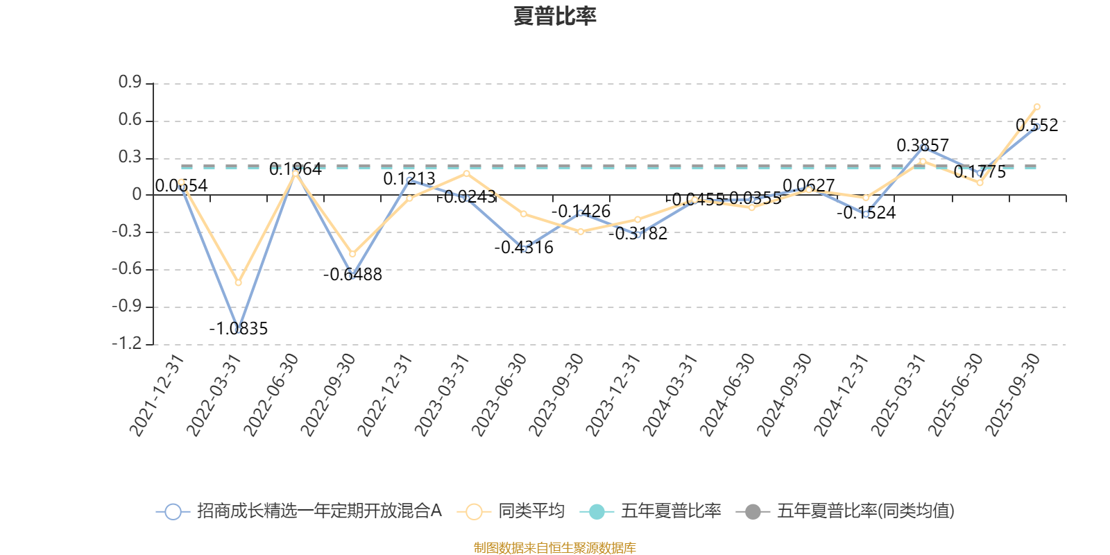 截至9月30日,基金近三年夏普比率为0.5583,位于同类可比基金230/518。