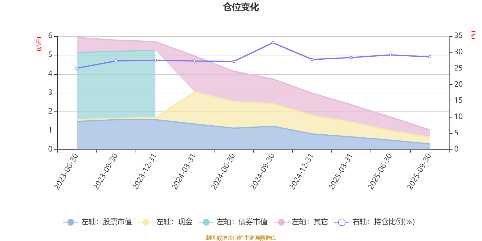 据定期报告数据统计,成立以来平均股票仓位为28.16%,同类平均为19.04%。2024年三季度末基金达到32.97%的最高仓位,2023年上半年末最低,为25.11%。