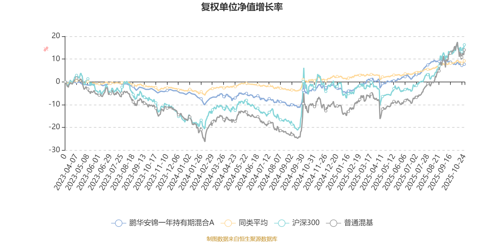 截至10月24日,鹏华安锦一年持有期混合A近三个月复权单位净值增长率为0.65%,位于同类可比基金522/629;近半年复权单位净值增长率为7.57%,位于同类可比基金167/629;近一年复权单位净值增长率为12.27%,位于同类可比基金85/623。