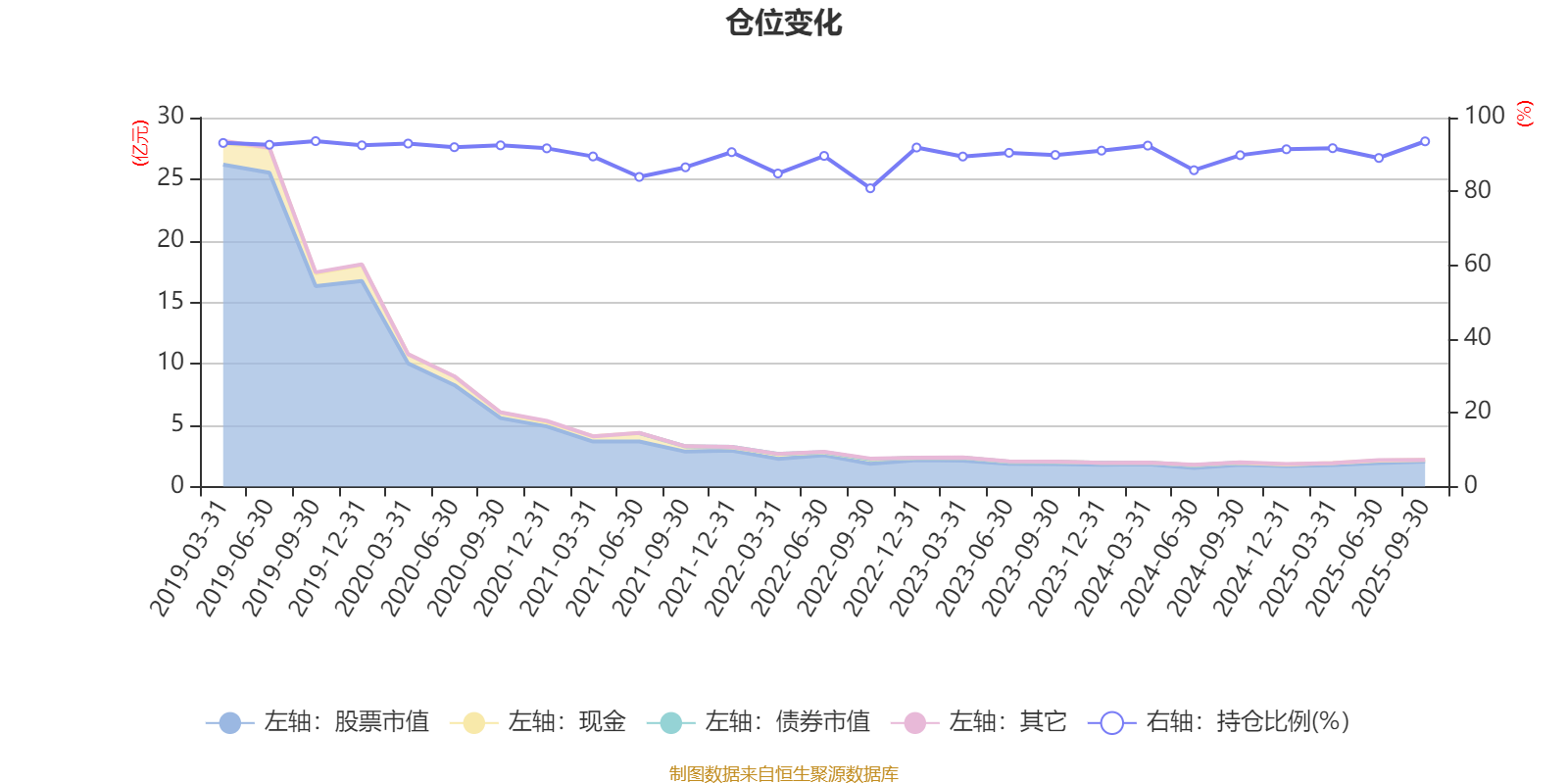 据定期报告数据统计,近三年平均股票仓位为90.54%,同类平均为88.21%。2019年三季度末基金达到93.62%的最高仓位,2022年三季度末最低,为80.84%。