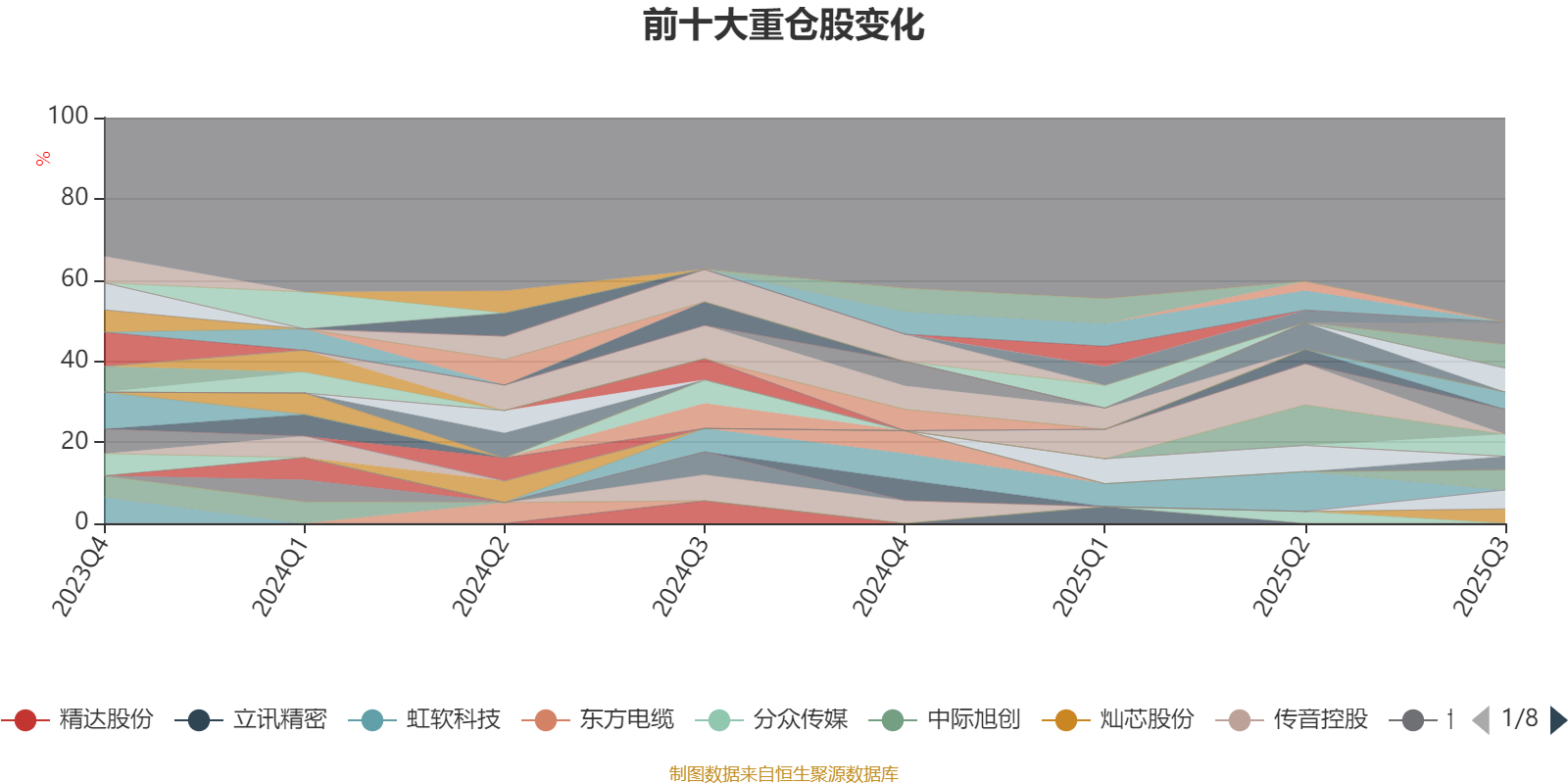 截至2025年三季度末,基金十大重仓股分别是歌尔股份、申通快递、九方智投控股、龙旗科技、圆通速递、京仪装备、开普云、合锻智能、灿芯股份、晶合集成。