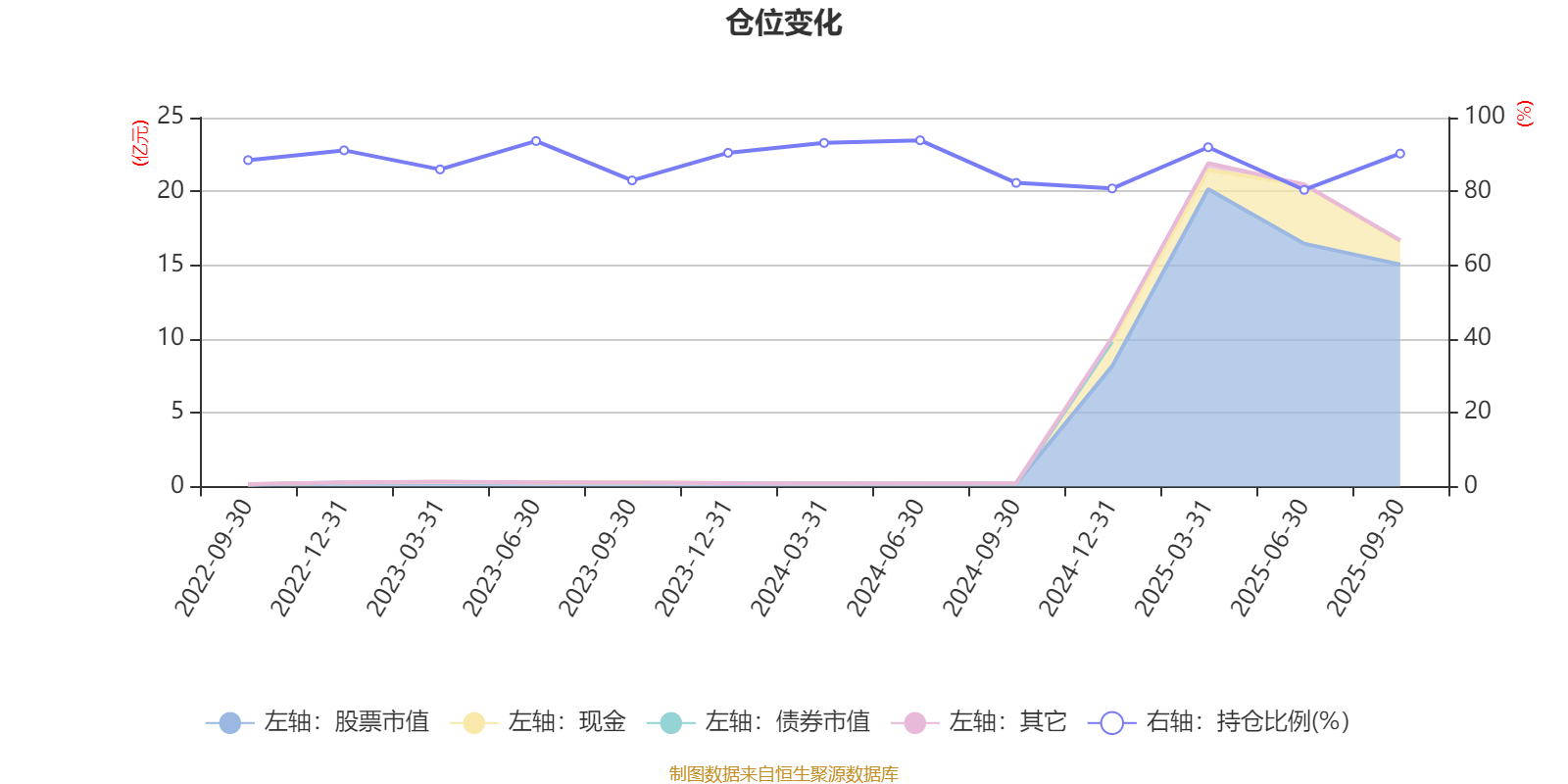据定期报告数据统计,近三年平均股票仓位为88.08%,同类平均为88.21%。2024年上半年末基金达到93.85%的最高仓位,2025年上半年末最低,为80.42%。