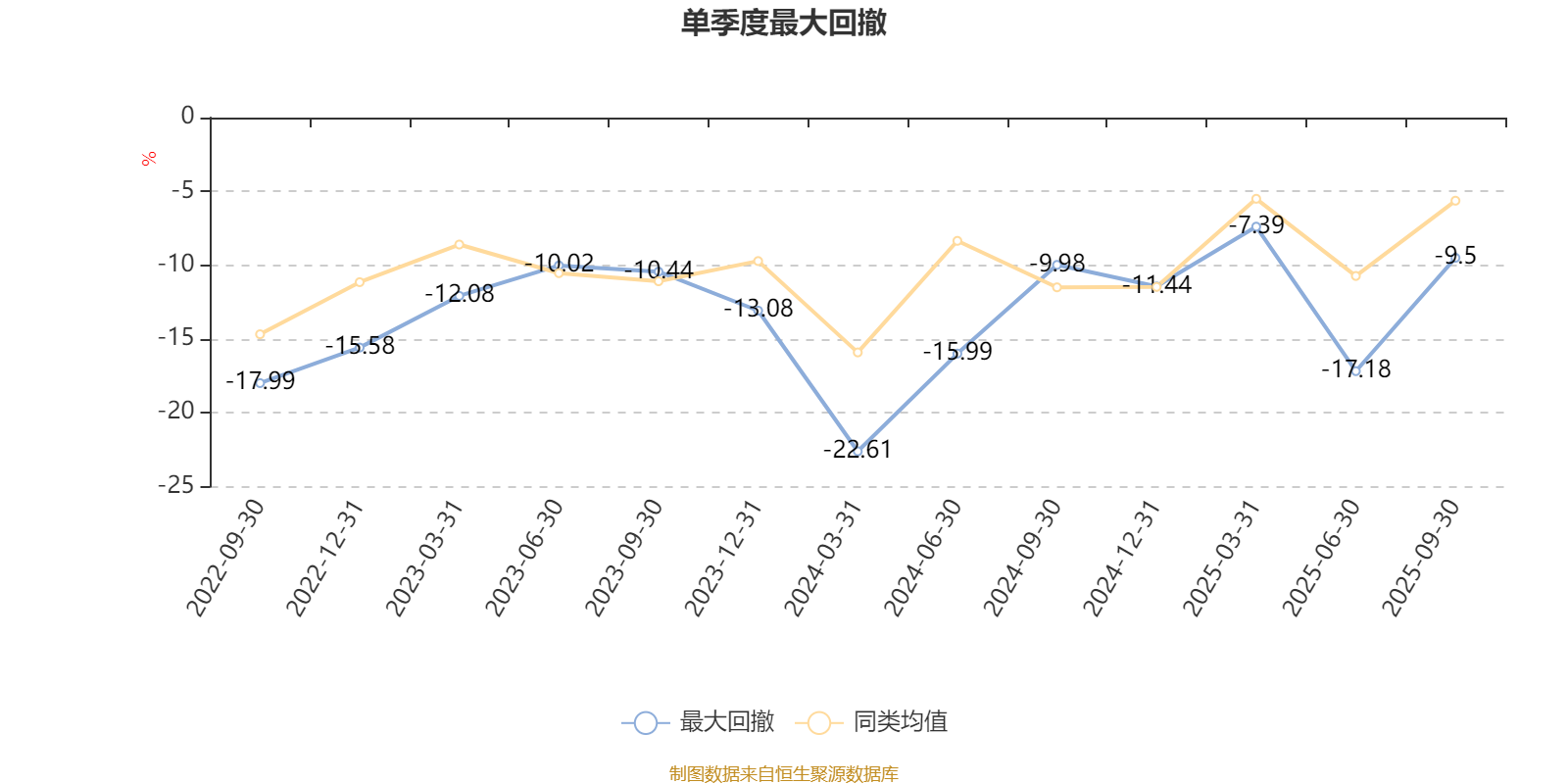 截至10月24日,基金近三年最大回撤为39.76%,同类可比基金排名113/156。单季度最大回撤出现在2024年一季度,为22.61%。