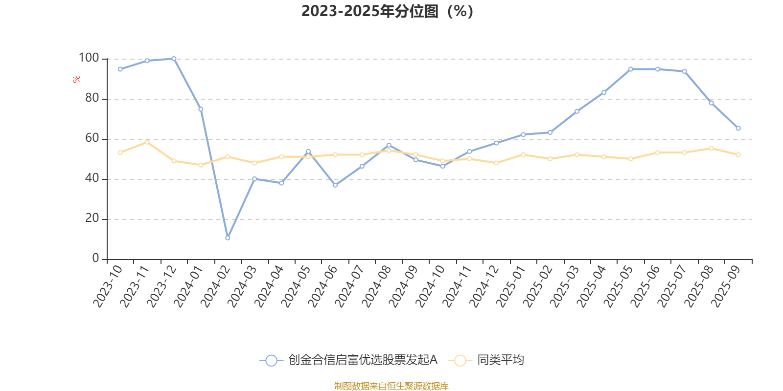 通过所选区间该基金净值增长率分位图,可以观察该基金与同类基金业绩比较情况。图为坐标原点到区间内某时点的净值增长率在同类基金中的分位数。