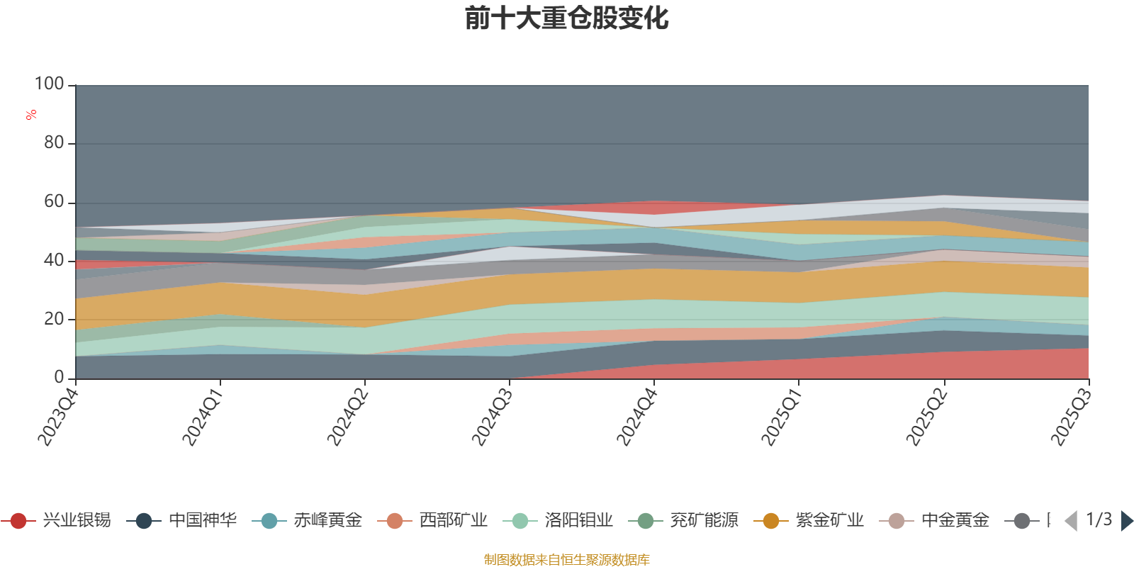 该基金持股集中度较高。截至2025年三季度末,基金十大重仓股分别是兴业银锡、紫金矿业、洛阳钼业、华友钴业、天山铝业、山东黄金、中国神华、云铝股份、中金黄金、赤峰黄金。
