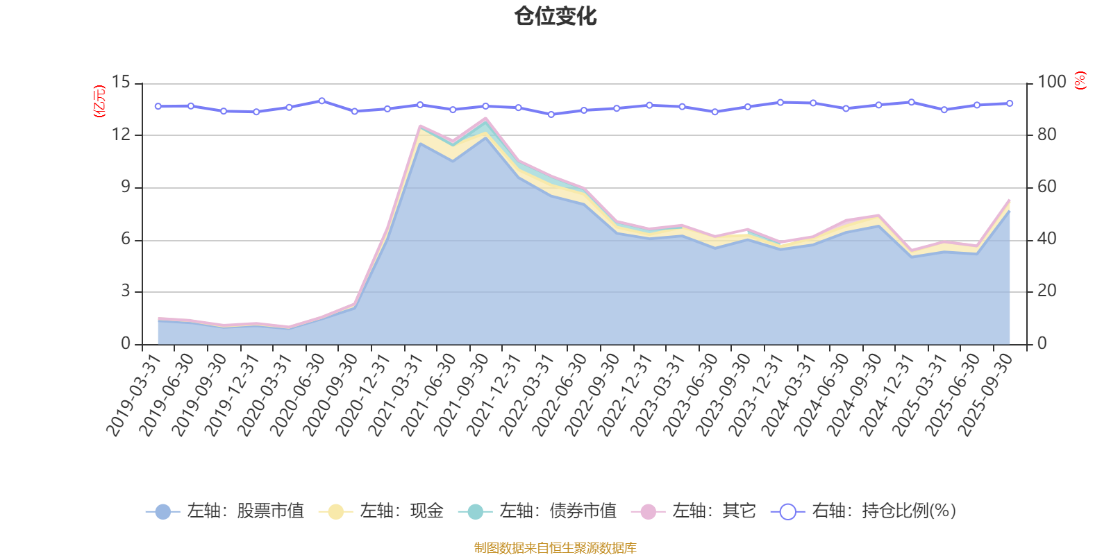 据定期报告数据统计,近三年平均股票仓位为91.37%,同类平均为89.45%。2020年上半年末基金达到93.28%的最高仓位,2022年一季度末最低,为88.05%。