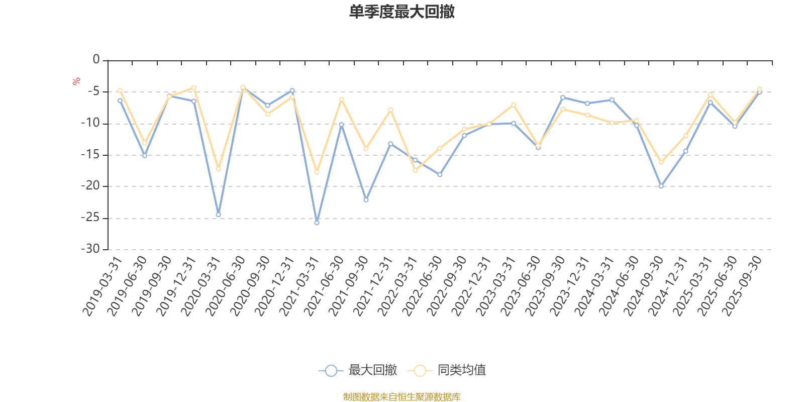 通过所选区间该基金净值增长率分位图,可以观察该基金与同类基金业绩比较情况。图为坐标原点到区间内某时点的净值增长率在同类基金中的分位数。