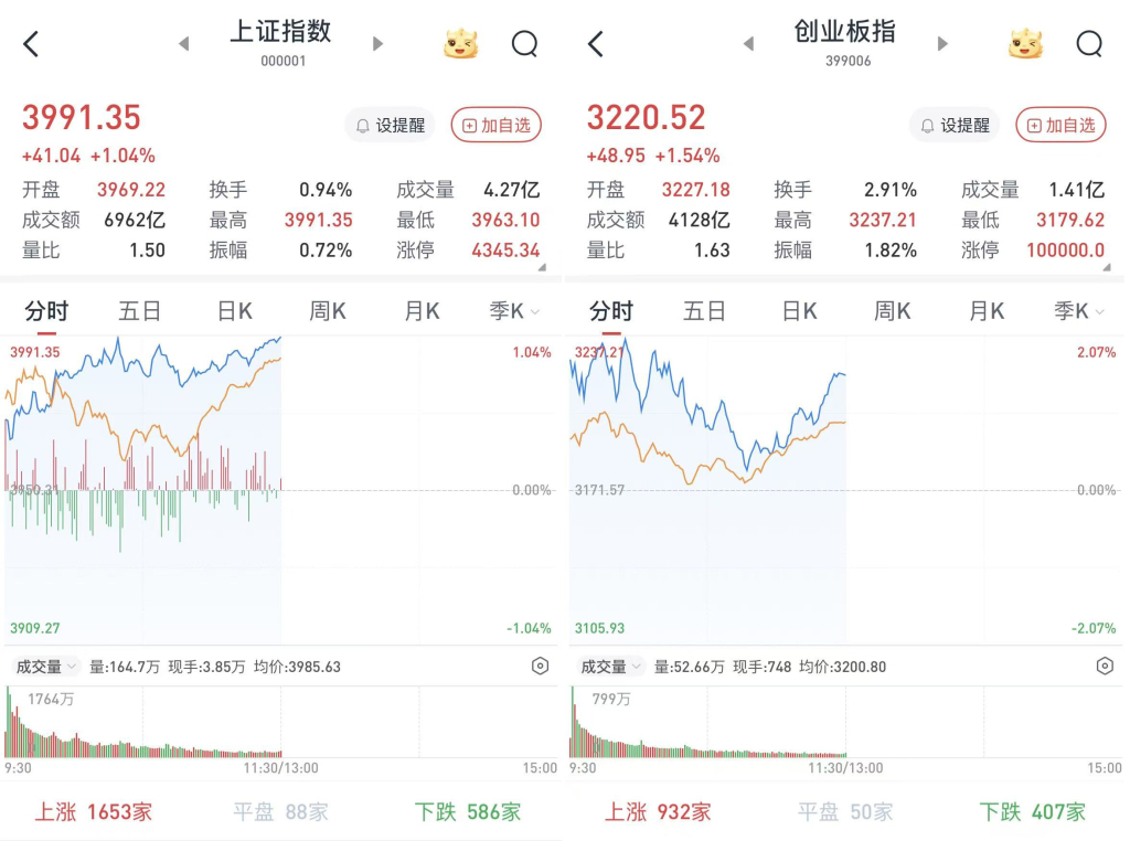 逼近4000点!A股早盘高开高走,沪指涨1.04%