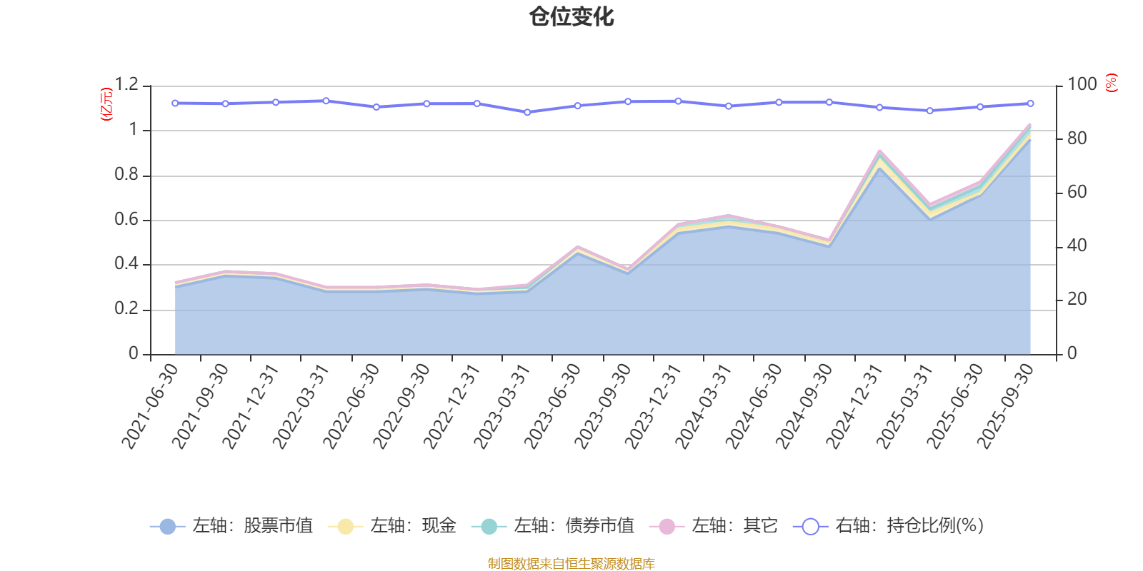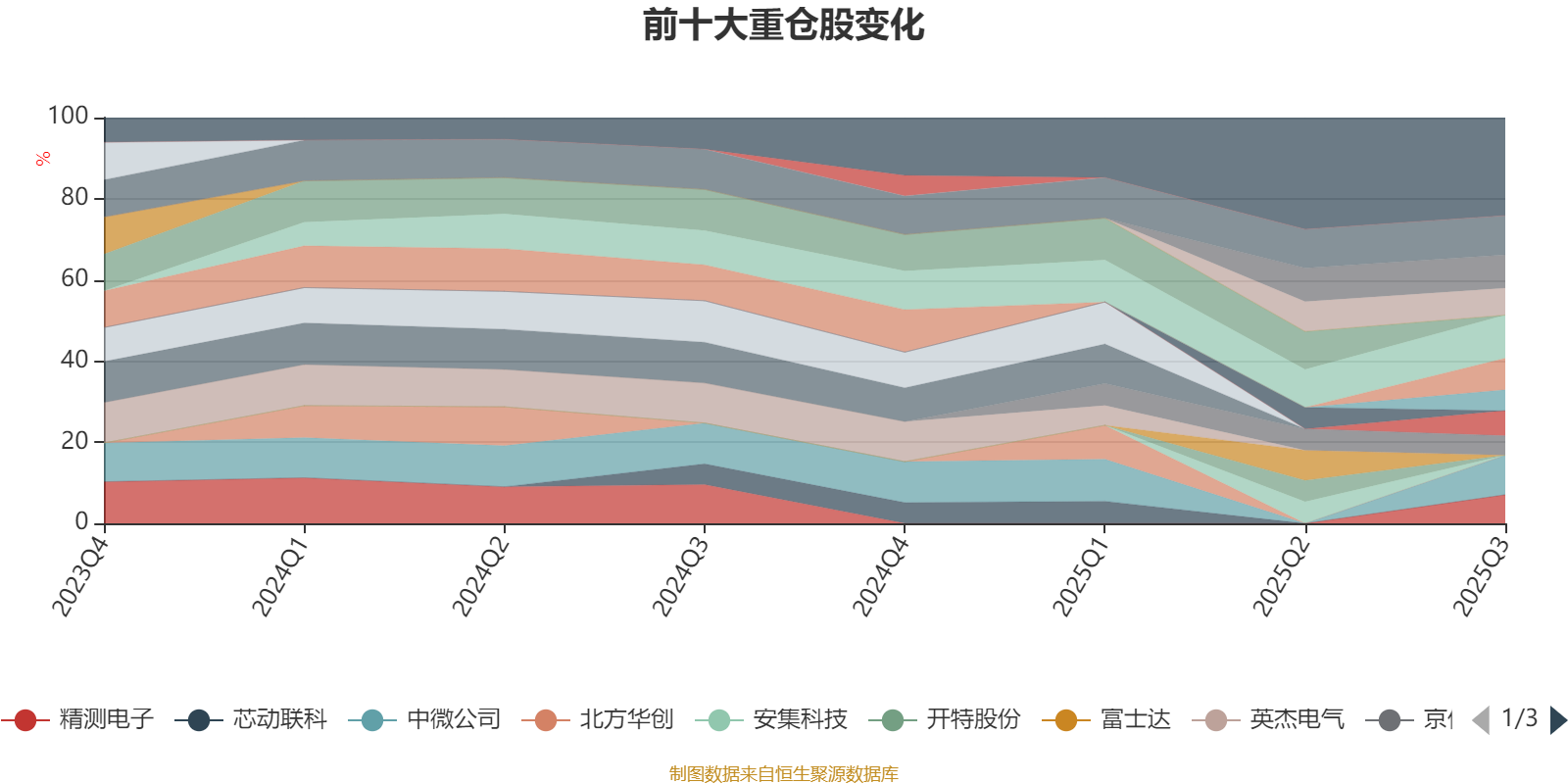 该基金持股集中度较高,近2年前十大重仓股集中度长期超过60%。截至2025年三季度末,基金十大重仓股分别是赛力斯、中微公司、拓荆科技、锦波生物、比亚迪、精测电子、奥迪威、恒玄科技、迈为股份、京仪装备。