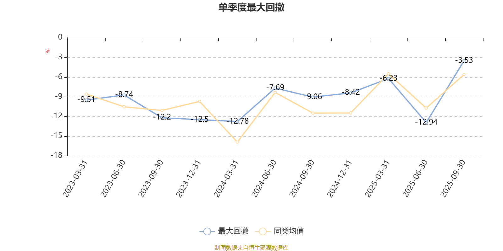 截至10月24日,基金近三年最大回撤为28.7%,同类可比基金排名42/156。单季度最大回撤出现在2025年二季度,为12.94%。