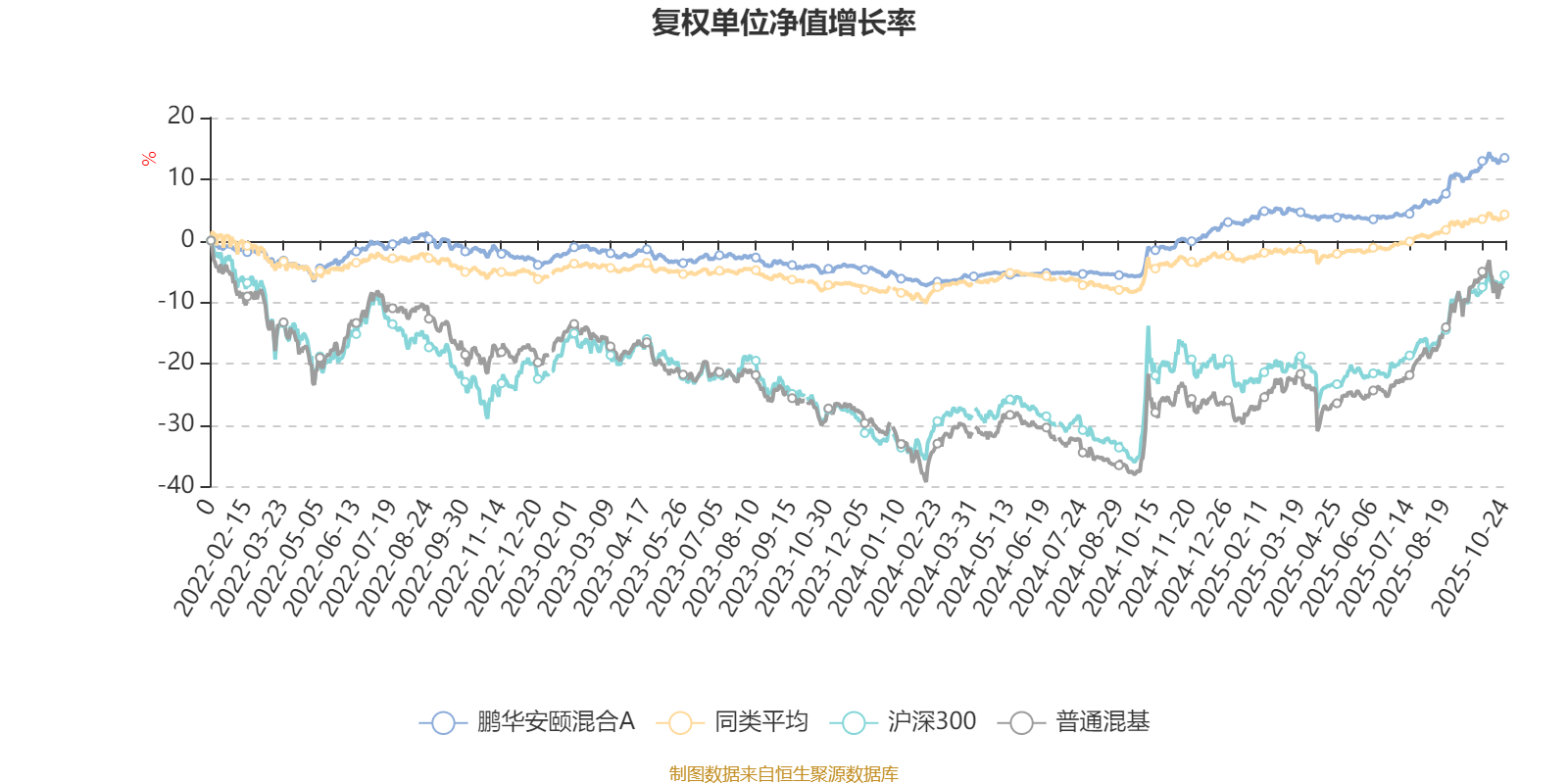 截至10月24日,鹏华安颐混合A近三个月复权单位净值增长率为7.47%,位于同类可比基金44/629;近半年复权单位净值增长率为9.42%,位于同类可比基金101/629;近一年复权单位净值增长率为14.95%,位于同类可比基金51/623;近三年复权单位净值增长率为15.57%,位于同类可比基金141/556。
