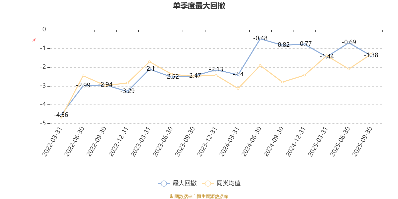 截至10月24日,基金近三年最大回撤为6.62%,同类可比基金排名297/552。单季度最大回撤出现在2022年一季度,为4.56%。