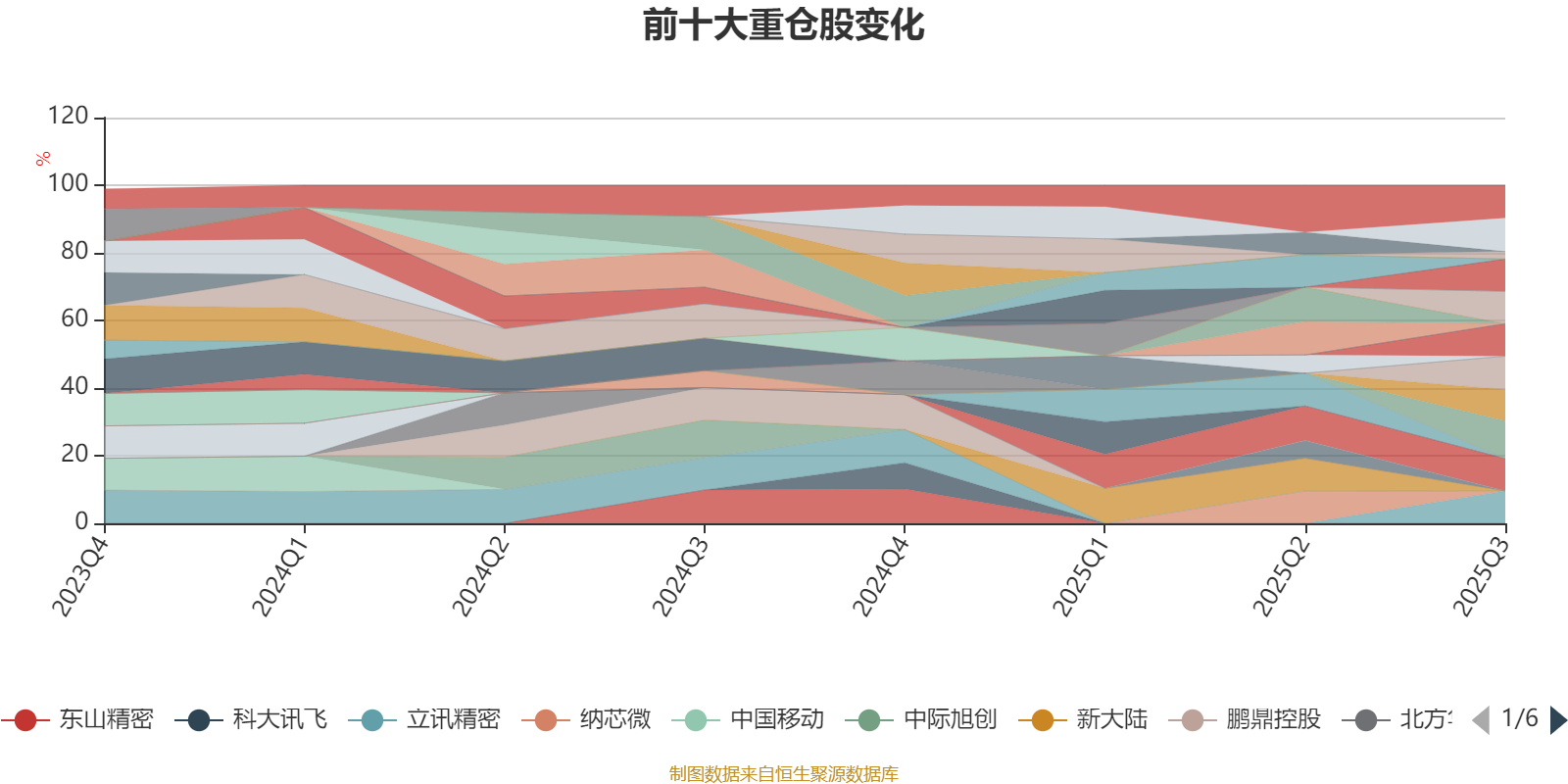 该基金持股集中度较高,近2年前十大重仓股集中度长期超过60%。截至2025年三季度末,基金十大重仓股分别是晶泰控股、兆易创新、澜起科技、立讯精密、海光信息、芯原股份、沪电股份、工业富联、寒武纪、瑞芯微。