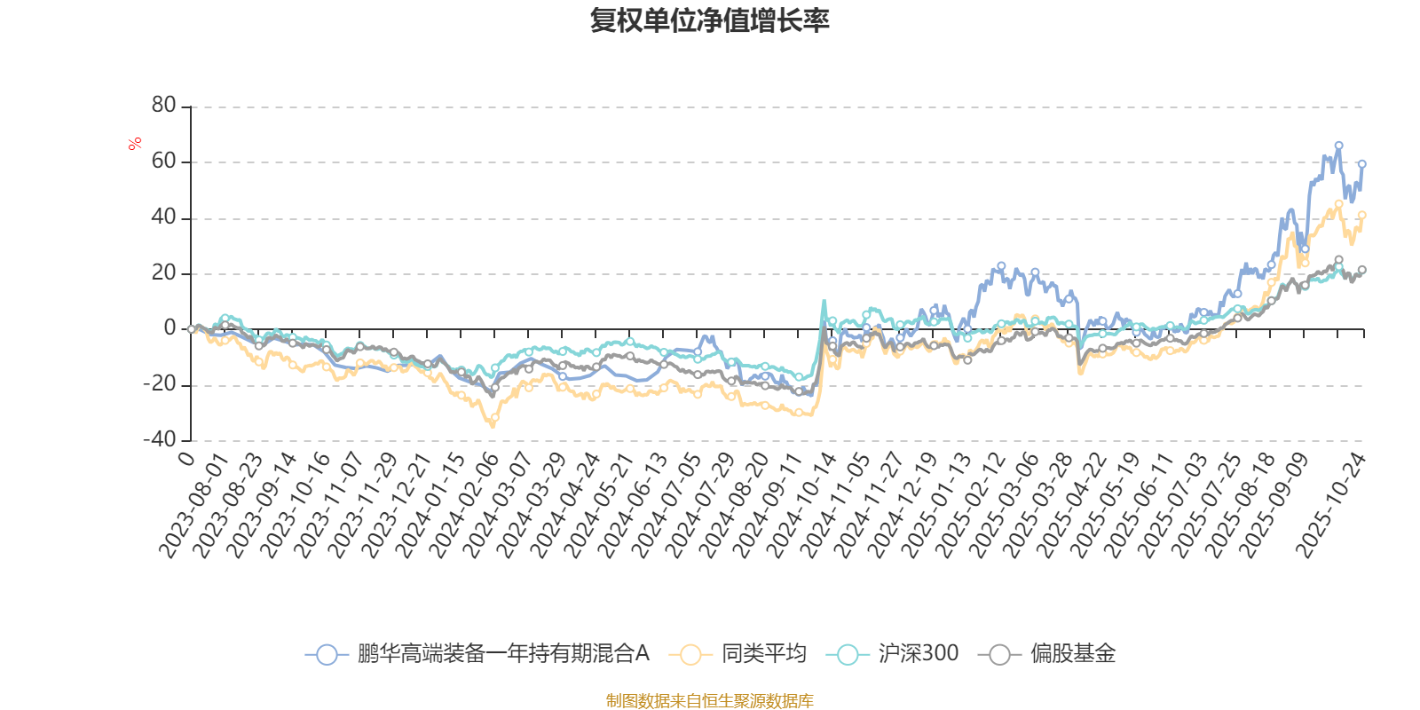 截至10月24日,鹏华高端装备一年持有期混合A近三个月复权单位净值增长率为41.77%,位于同类可比基金84/229;近半年复权单位净值增长率为58.83%,位于同类可比基金90/229;近一年复权单位净值增长率为63.22%,位于同类可比基金66/213。