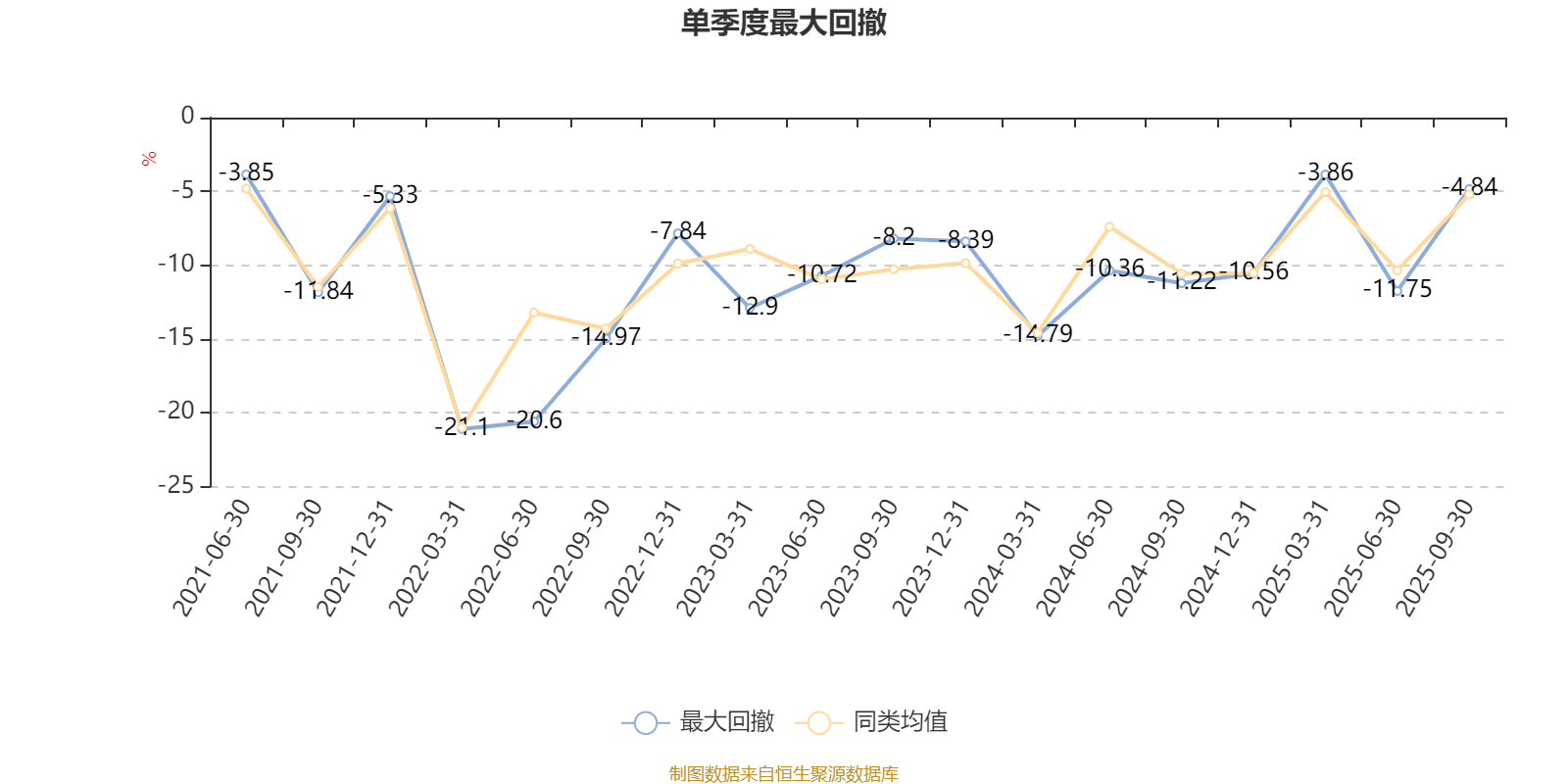 截至10月24日,基金近三年最大回撤为35.77%,同类可比基金排名70/125。单季度最大回撤出现在2022年一季度,为21.1%。