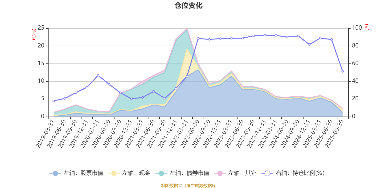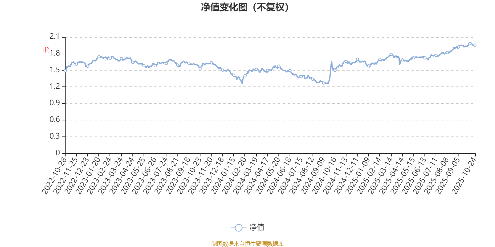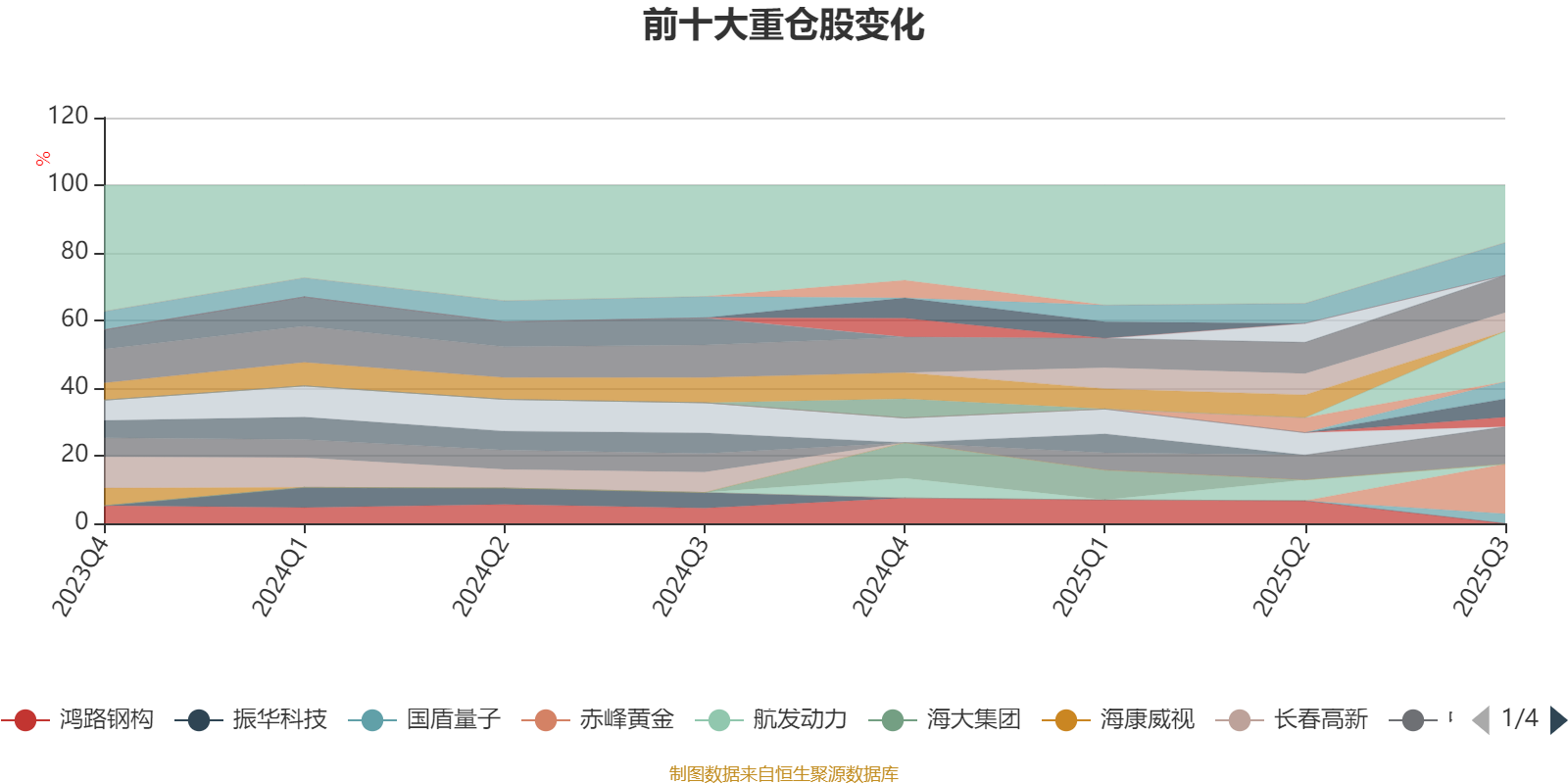 该基金持股集中度较高,近2年前十大重仓股集中度长期超过60%。截至2025年三季度末,基金十大重仓股分别是山金国际、赤峰黄金、赛轮轮胎、中国国航、南方航空、金禾实业、明阳电气、兔宝宝、鼎阳科技、国盾量子。