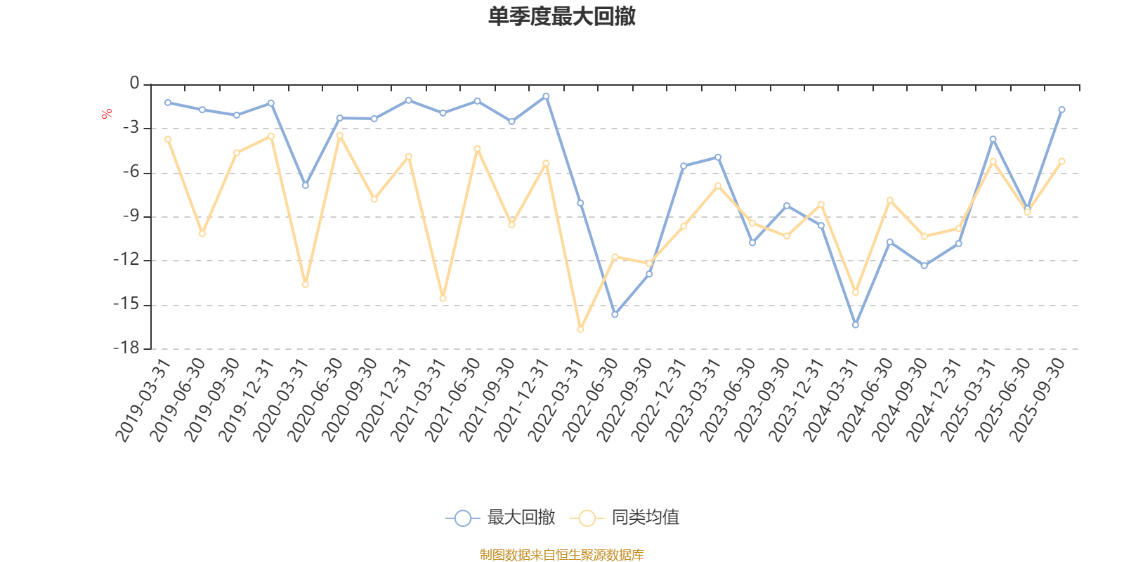 截至10月24日,基金近三年最大回撤为28.41%,同类可比基金排名492/1283。单季度最大回撤出现在2024年一季度,为16.37%。