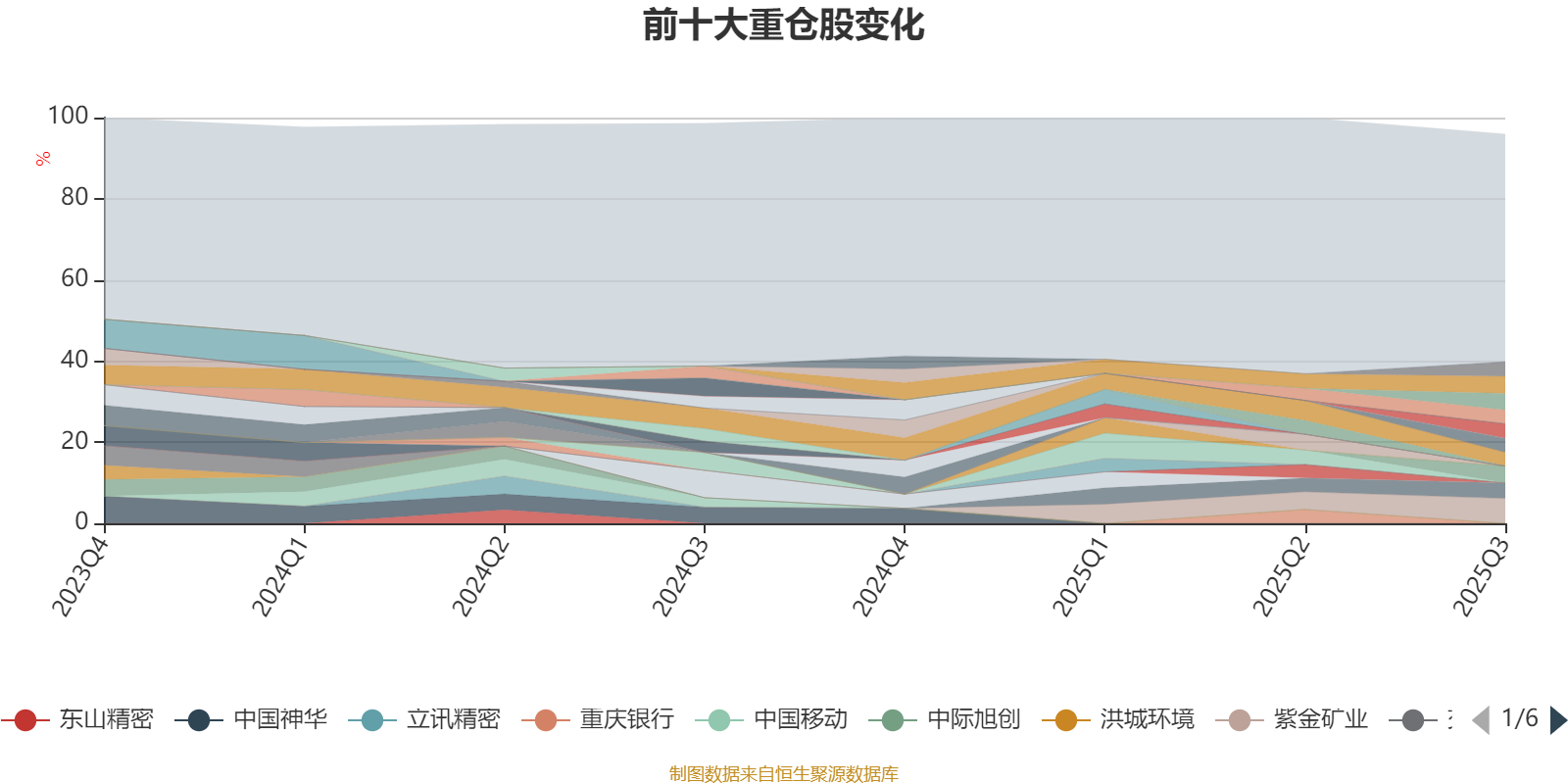 截至2025年三季度末,基金十大重仓股分别是紫金矿业、江苏银行、宁德时代、中国巨石、腾讯控股、兆易创新、阿里巴巴-W、中科曙光、新易盛、长江电力。