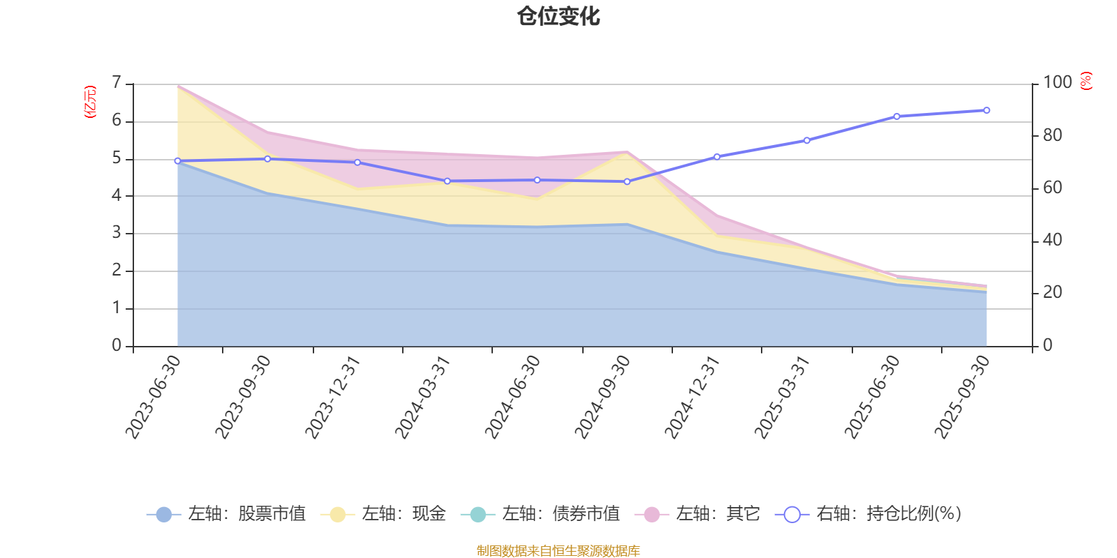 据定期报告数据统计,成立以来平均股票仓位为72.9%,同类平均为85.51%。2025年三季度末基金达到89.89%的最高仓位,2024年三季度末最低,为62.72%。