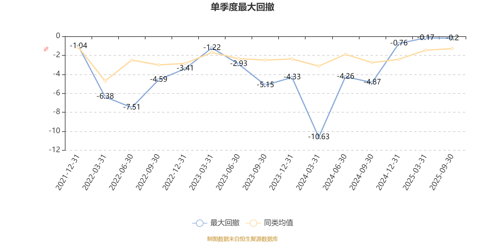 截至10月24日,基金近三年最大回撤为16.23%,同类可比基金排名521/557。单季度最大回撤出现在2024年一季度,为10.63%。
