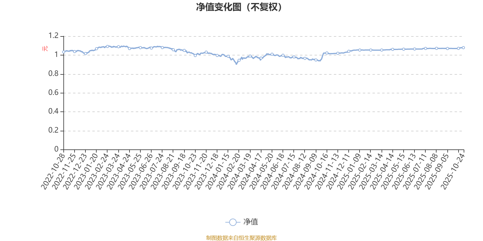 该基金属于偏债混合型基金。截至10月24日,单位净值为1.078元。基金经理是祝松、寇斌权和张静娴。