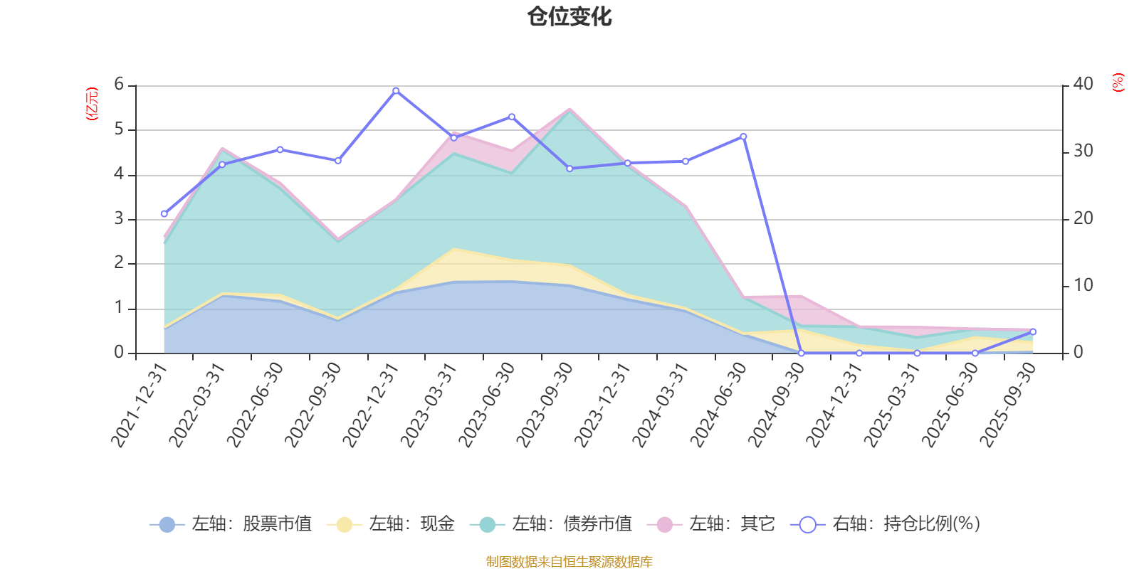 据定期报告数据统计,近三年平均股票仓位为18.9%,同类平均为18.94%。2022年末基金达到39.2%的最高仓位,2025年三季度末最低,为3.19%。