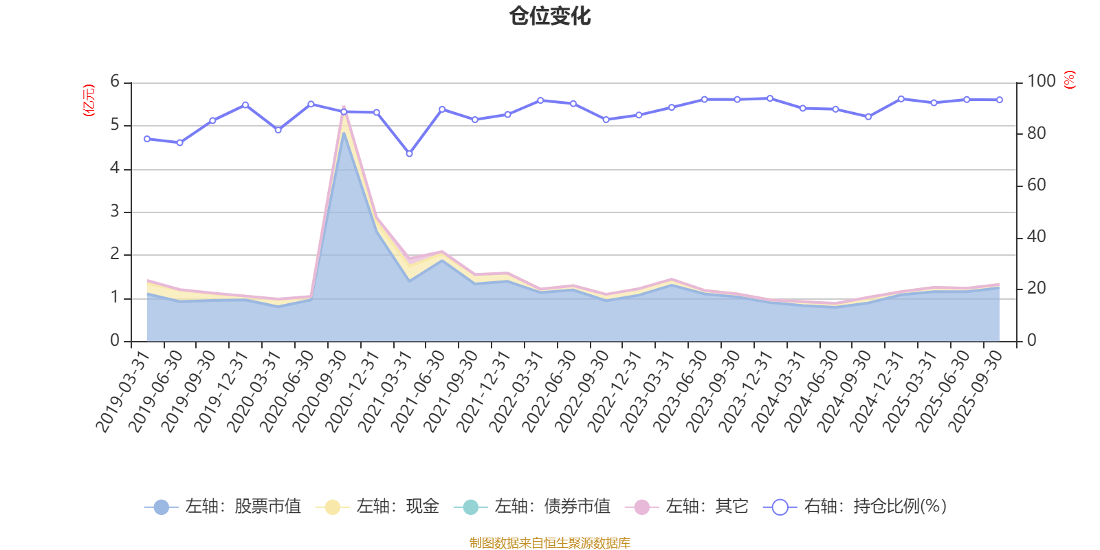 据定期报告数据统计,近三年平均股票仓位为91.47%,同类平均为72.16%。2023年末基金达到93.87%的最高仓位,2021年一季度末最低,为72.52%。
