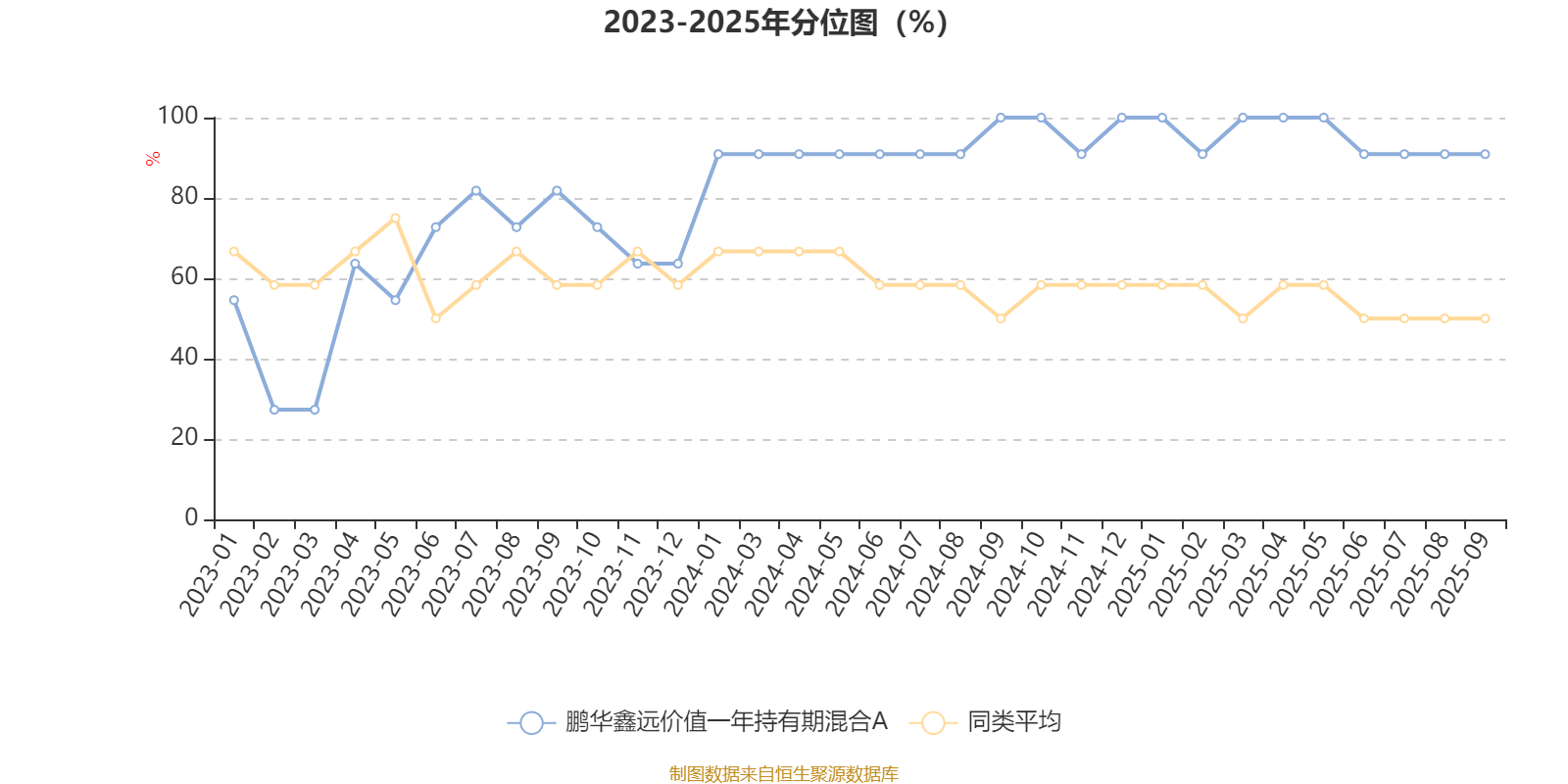 通过所选区间该基金净值增长率分位图,可以观察该基金与同类基金业绩比较情况。图为坐标原点到区间内某时点的净值增长率在同类基金中的分位数。
