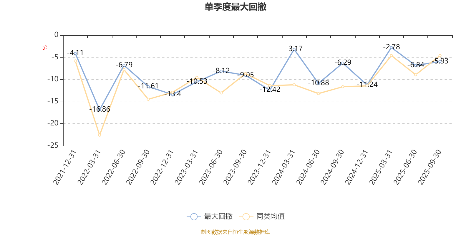 截至10月24日,基金近三年最大回撤为20.03%,同类可比基金排名1/74。单季度最大回撤出现在2022年一季度,为16.86%。