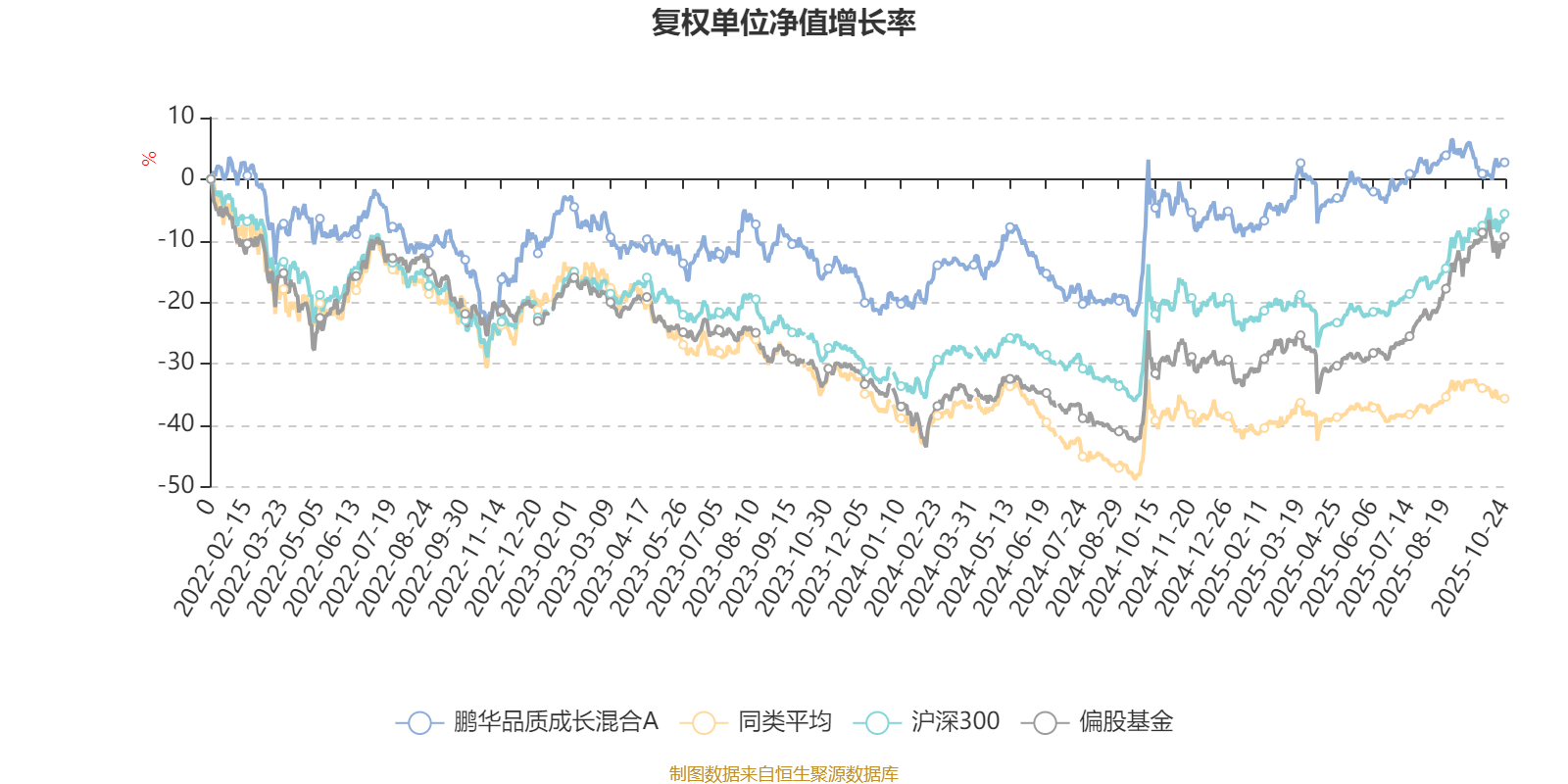 截至10月24日,鹏华品质成长混合A近三个月复权单位净值增长率为-0.73%,位于同类可比基金53/85;近半年复权单位净值增长率为5.71%,位于同类可比基金38/85;近一年复权单位净值增长率为5.61%,位于同类可比基金47/82;近三年复权单位净值增长率为31.08%,位于同类可比基金2/74。