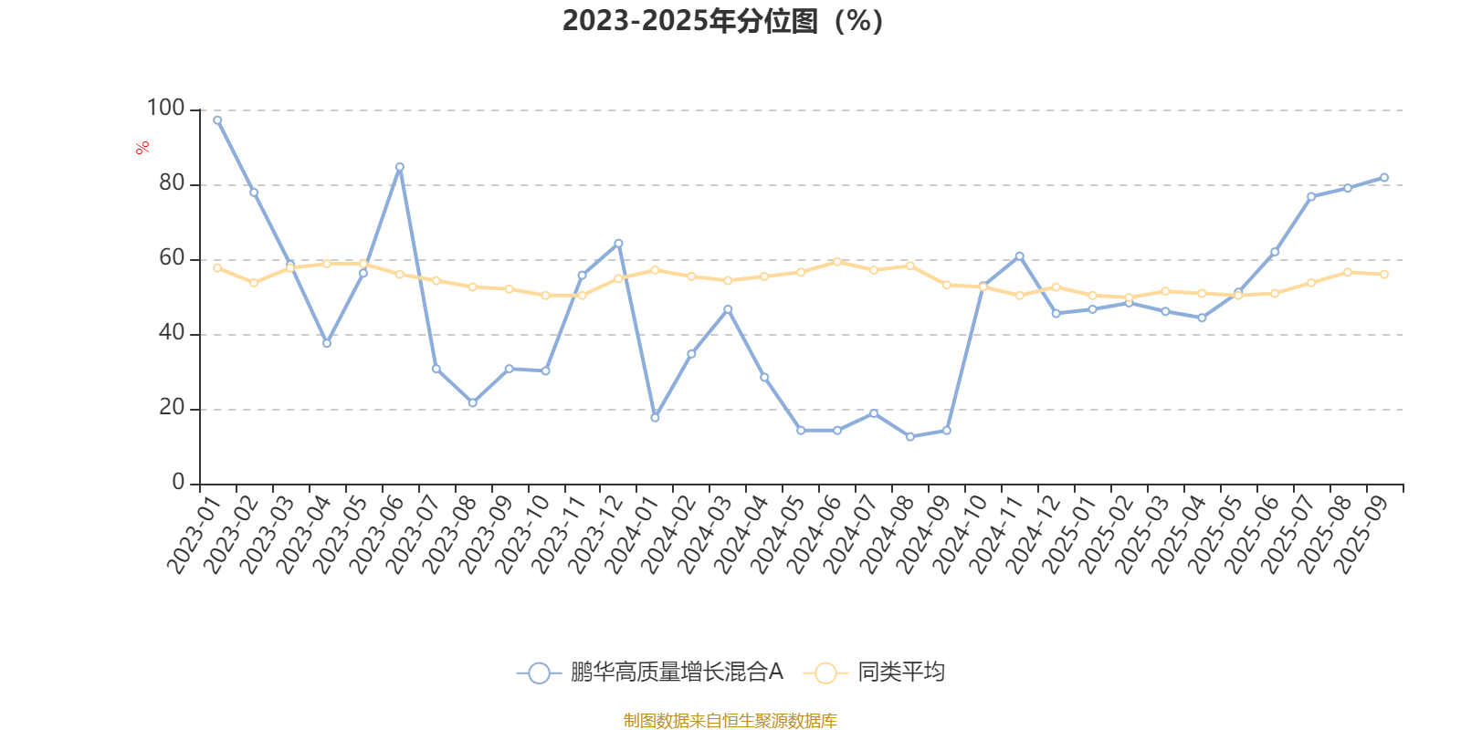 通过所选区间该基金净值增长率分位图,可以观察该基金与同类基金业绩比较情况。图为坐标原点到区间内某时点的净值增长率在同类基金中的分位数。