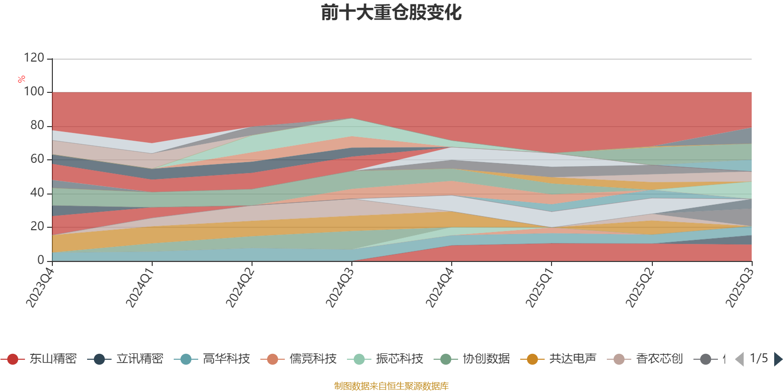 该基金持股集中度较高,近2年前十大重仓股集中度长期超过60%。截至2025年三季度末,基金十大重仓股分别是佰维存储、宇晶股份、东山精密、新坐标、泰恩康、热景生物、上海复旦、瑞晟智能、立讯精密、高华科技。