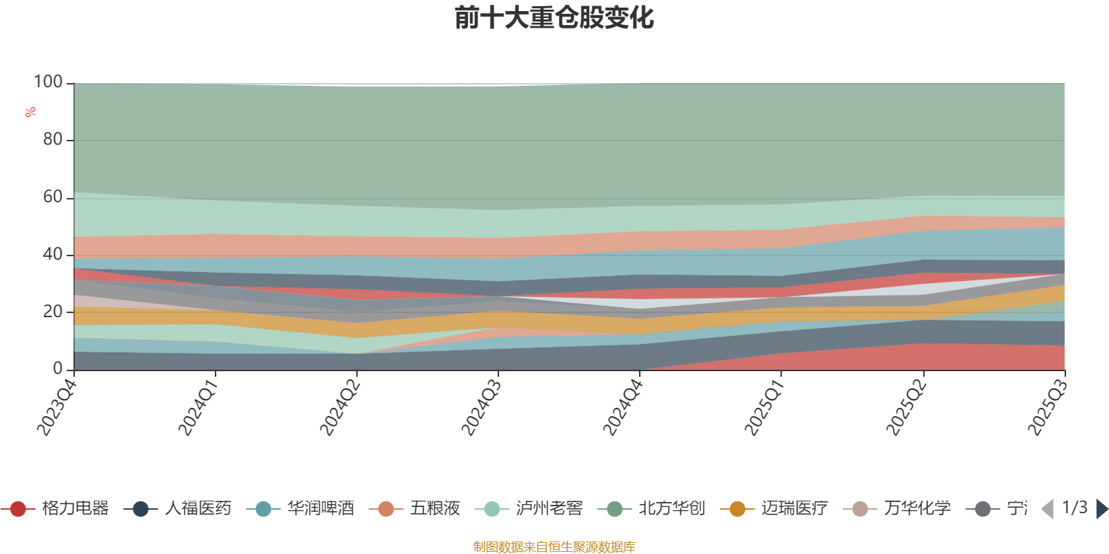 该基金持股集中度较高,且持股标的较为稳定。截至2025年三季度末,基金十大重仓股分别是腾讯控股、格力电器、人福医药、贵州茅台、迈瑞医疗、科伦药业、宁波银行、华润啤酒、古井贡酒、北方华创。