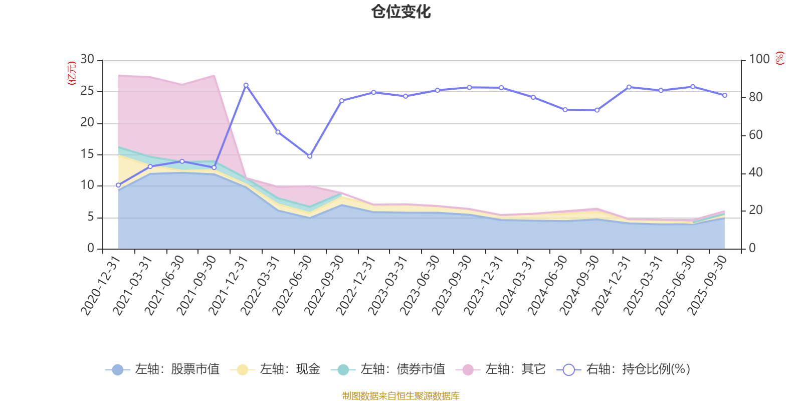 据定期报告数据统计,近三年平均股票仓位为81.96%,同类平均为67.23%。2021年末基金达到86.76%的最高仓位,2020年末最低,为33.79%。