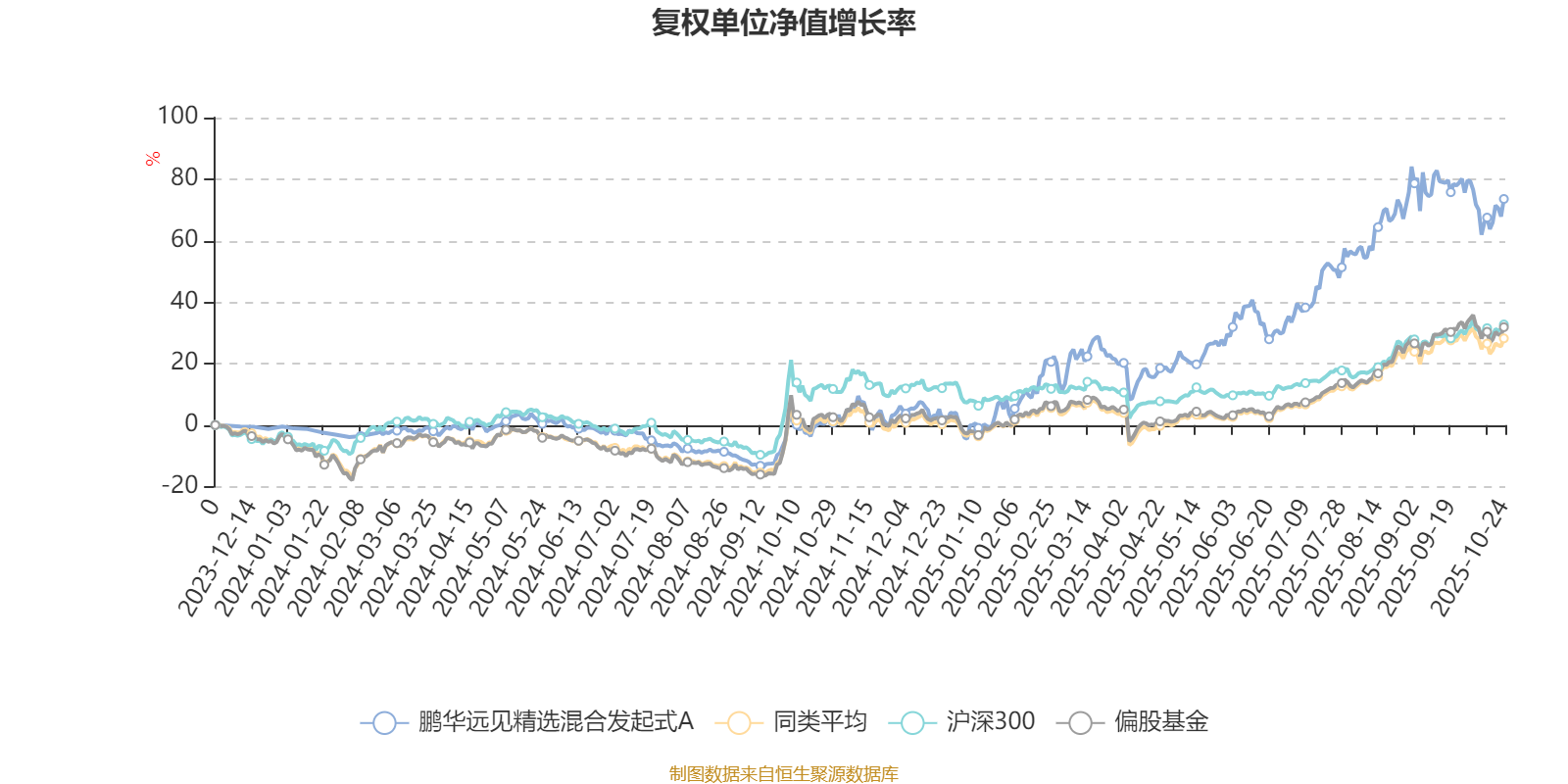 截至10月24日,鹏华远见精选混合发起式A近三个月复权单位净值增长率为15.40%,位于同类可比基金274/689;近半年复权单位净值增长率为45.98%,位于同类可比基金88/688;近一年复权单位净值增长率为72.87%,位于同类可比基金19/653。