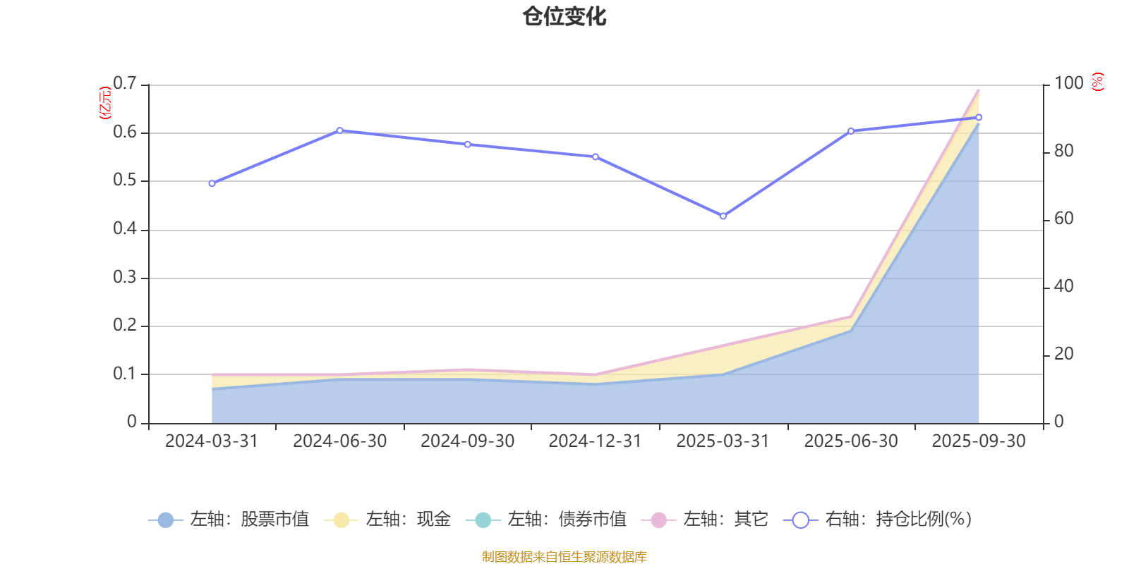 据定期报告数据统计,成立以来平均股票仓位为79.42%,同类平均为83.48%。2025年三季度末基金达到90.32%的最高仓位,2025年一季度末最低,为61.16%。