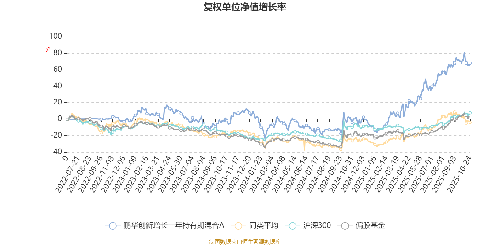 截至10月24日,鹏华创新增长一年持有期混合A近三个月复权单位净值增长率为8.28%,位于同类可比基金4/106;近半年复权单位净值增长率为37.14%,位于同类可比基金2/104;近一年复权单位净值增长率为66.35%,位于同类可比基金5/101;近三年复权单位净值增长率为67.93%,位于同类可比基金3/75。