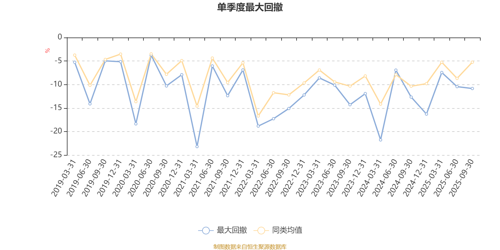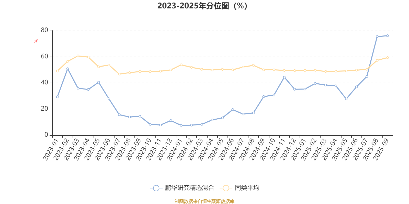 通过所选区间该基金净值增长率分位图,可以观察该基金与同类基金业绩比较情况。图为坐标原点到区间内某时点的净值增长率在同类基金中的分位数。