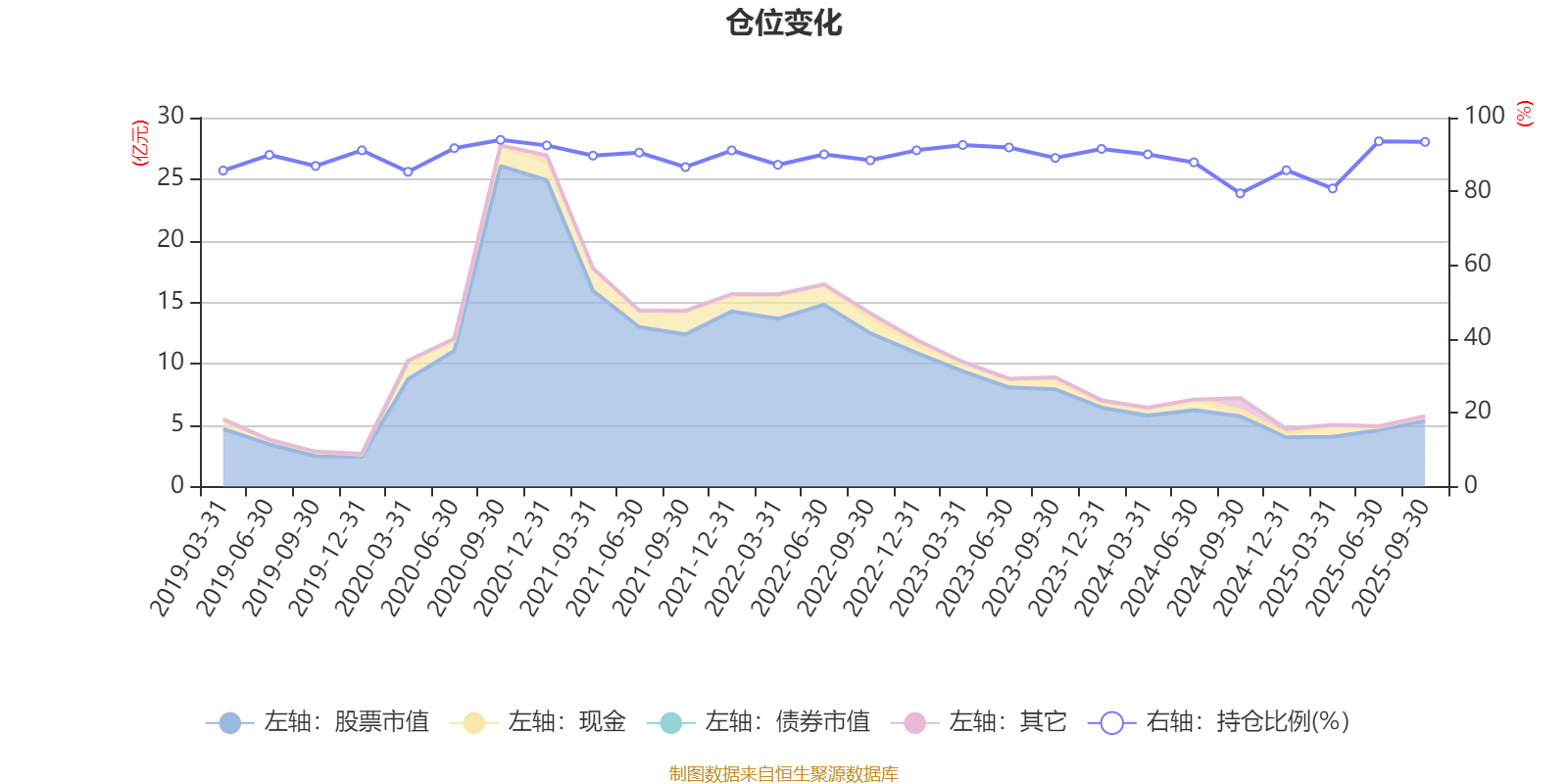 据定期报告数据统计,近三年平均股票仓位为88.92%,同类平均为72.19%。2020年三季度末基金达到93.96%的最高仓位,2024年三季度末最低,为79.46%。