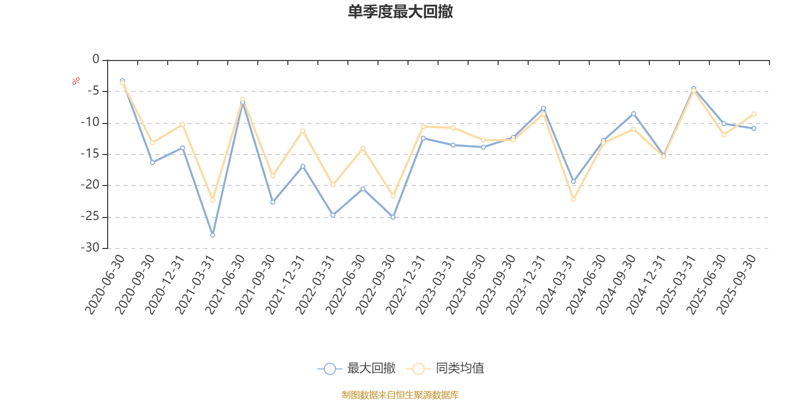 截至10月24日,基金近三年最大回撤为39.83%,同类可比基金排名42/75。单季度最大回撤出现在2021年一季度,为27.92%。