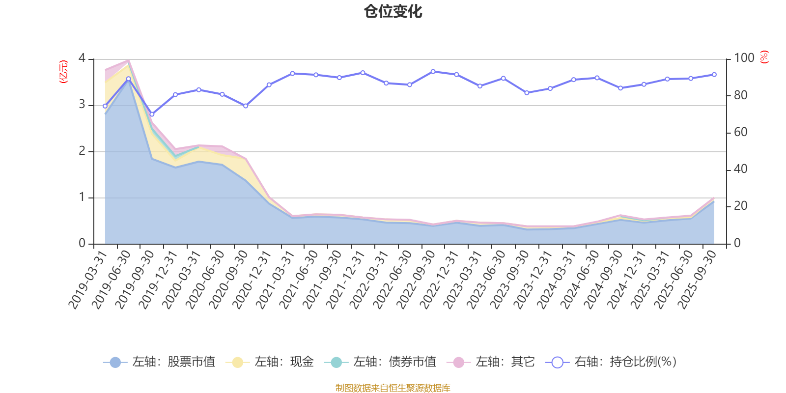 据定期报告数据统计,近三年平均股票仓位为87.63%,同类平均为72.16%。2022年三季度末基金达到93.2%的最高仓位,2019年三季度末最低,为70.1%。