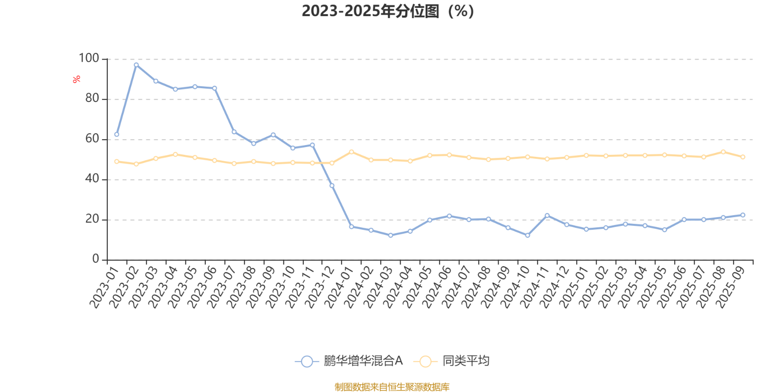 通过所选区间该基金净值增长率分位图,可以观察该基金与同类基金业绩比较情况。图为坐标原点到区间内某时点的净值增长率在同类基金中的分位数。