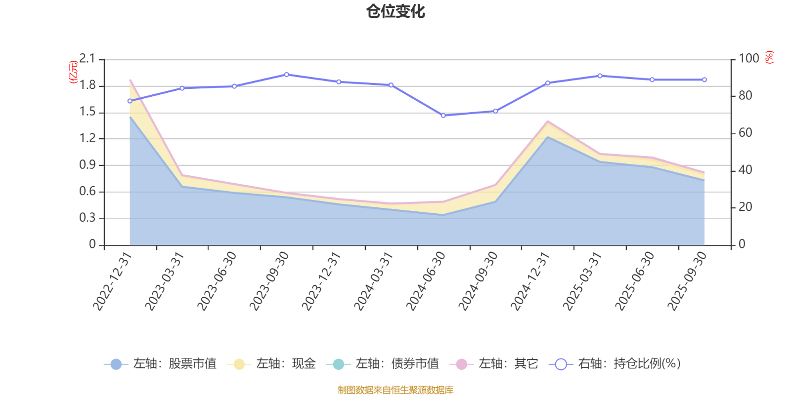 据定期报告数据统计,近三年平均股票仓位为84.29%,同类平均为83.44%。2023年三季度末基金达到91.77%的最高仓位,2024年上半年末最低,为69.73%。