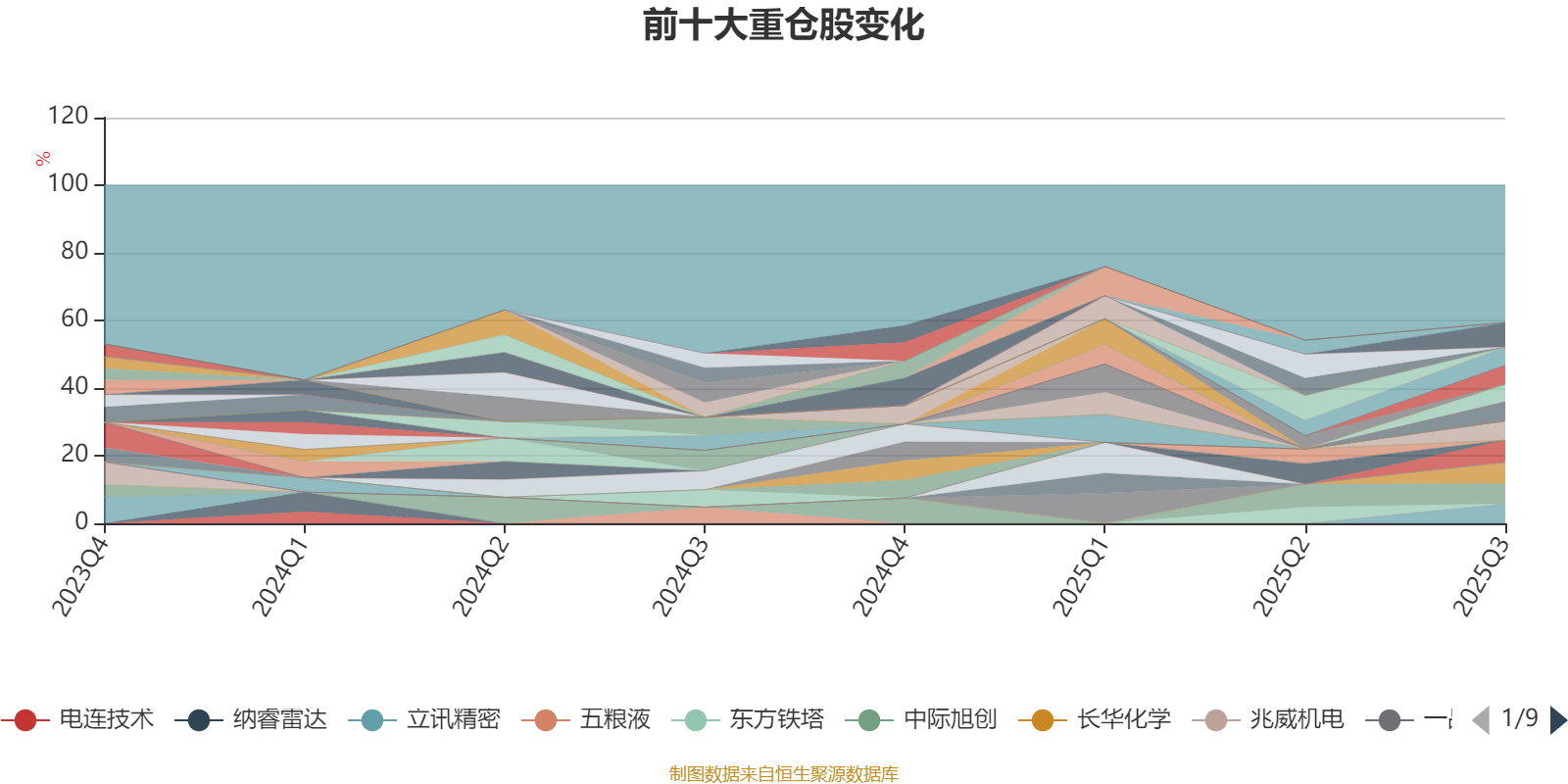 截至2025年三季度末,基金十大重仓股分别是新易盛、紫金矿业、长华化学、中际旭创、立讯精密、芯原股份、沪电股份、寒武纪、中创智领、牧原股份。