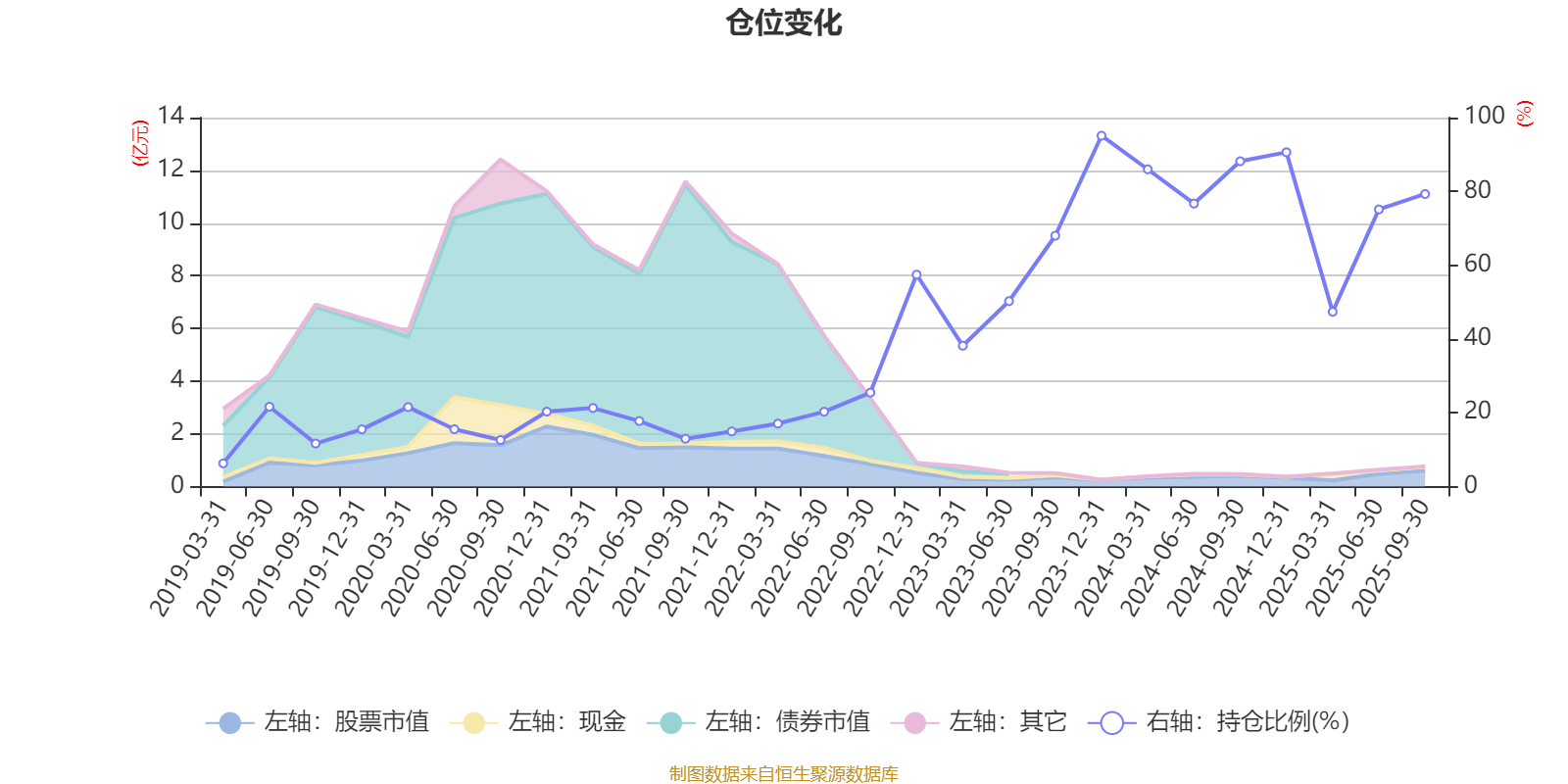 据定期报告数据统计,近三年平均股票仓位为71.02%,同类平均为72.19%。2023年末基金达到95.09%的最高仓位,2019年一季度末最低,为6.29%。