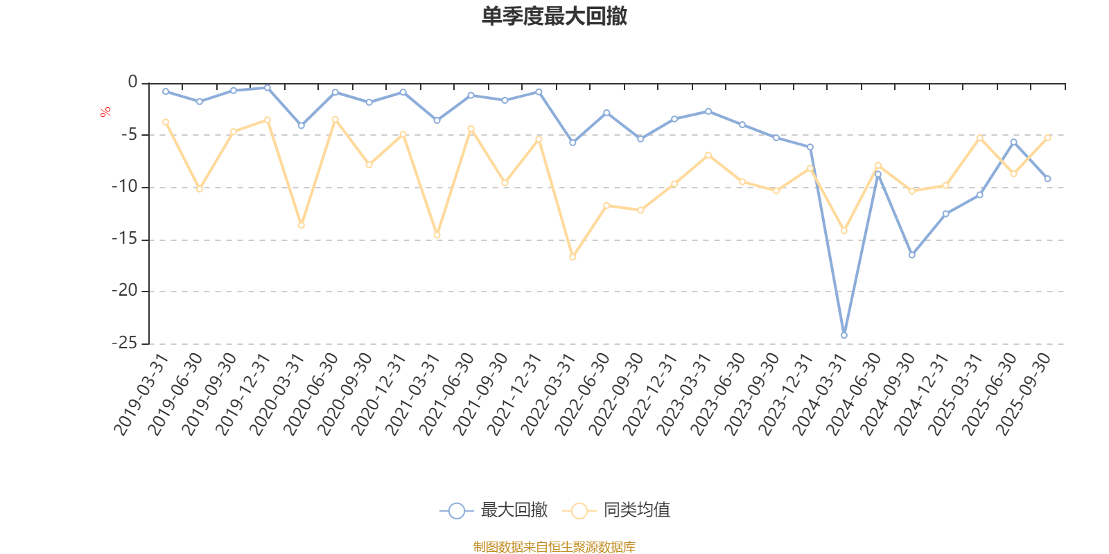 截至10月24日,基金近三年最大回撤为29.49%,同类可比基金排名528/1283。单季度最大回撤出现在2024年一季度,为24.18%。