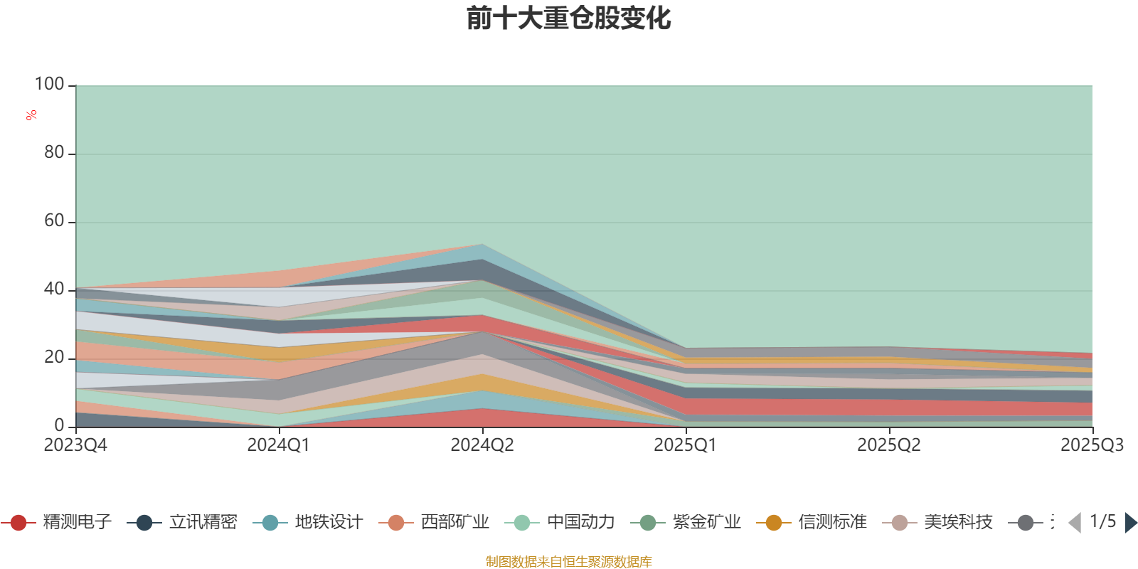 截至2025年三季度末,基金十大重仓股分别是贵州茅台、宁德时代、中国平安、招商银行、紫金矿业、新易盛、东方财富、兴业银行、美的集团、长江电力。