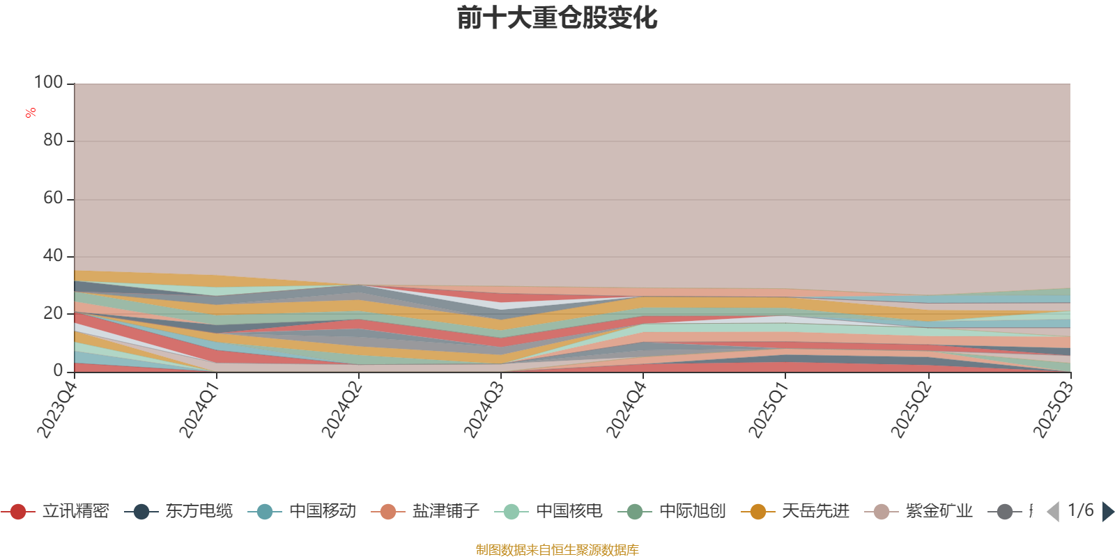 截至2025年三季度末,基金十大重仓股分别是宁德时代、寒武纪、中际旭创、恺英网络、银轮股份、中国平安、复旦微电、紫金矿业、广发证券、中国太保。
